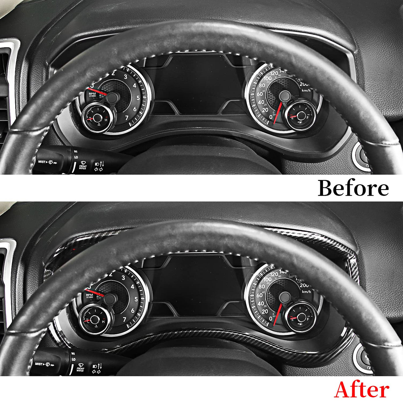 Sqqp Carbon Fiber Center Console Dashboard Meter Frame Cover Trim Fit For 2019-2023 Dodge Ram 1500 2500 3500