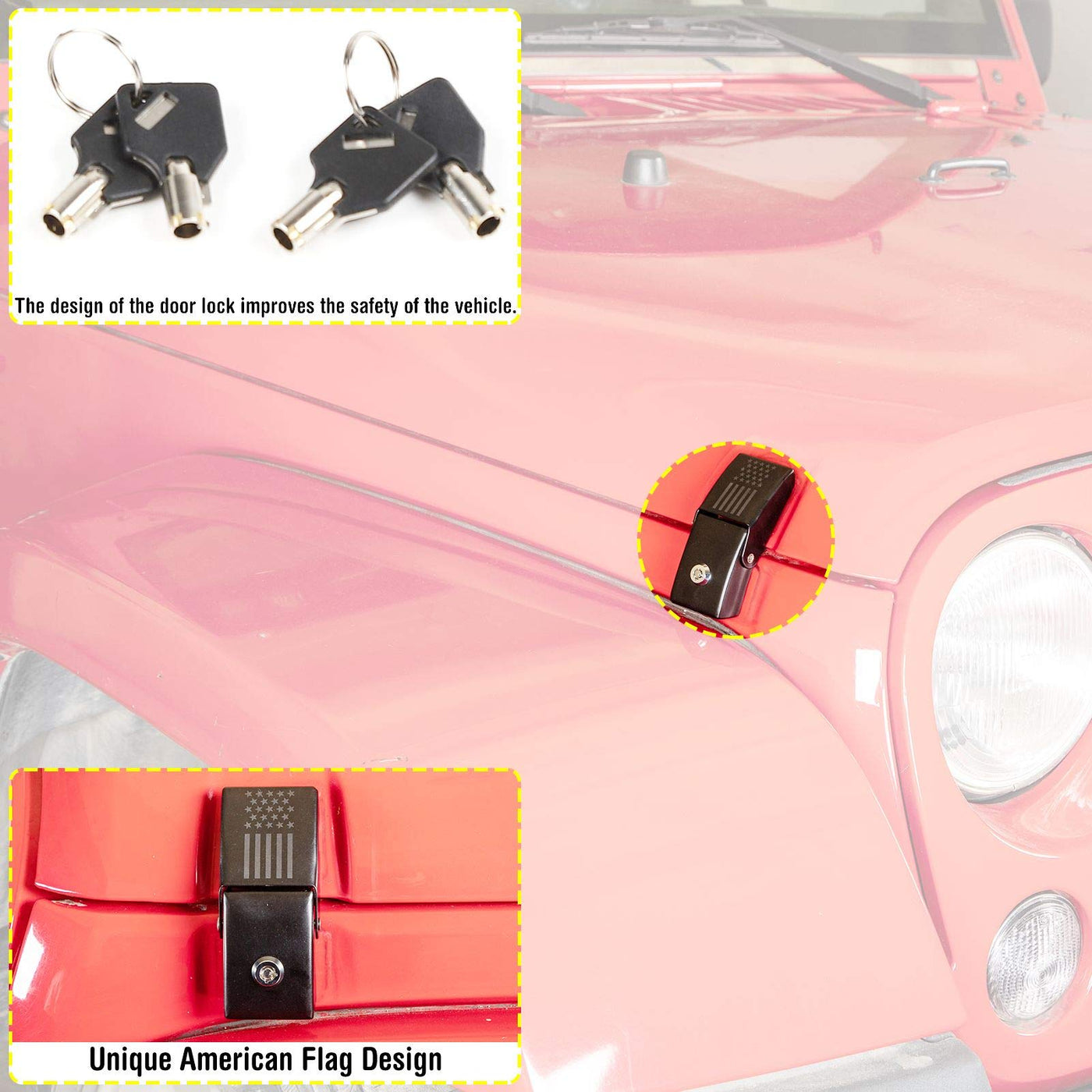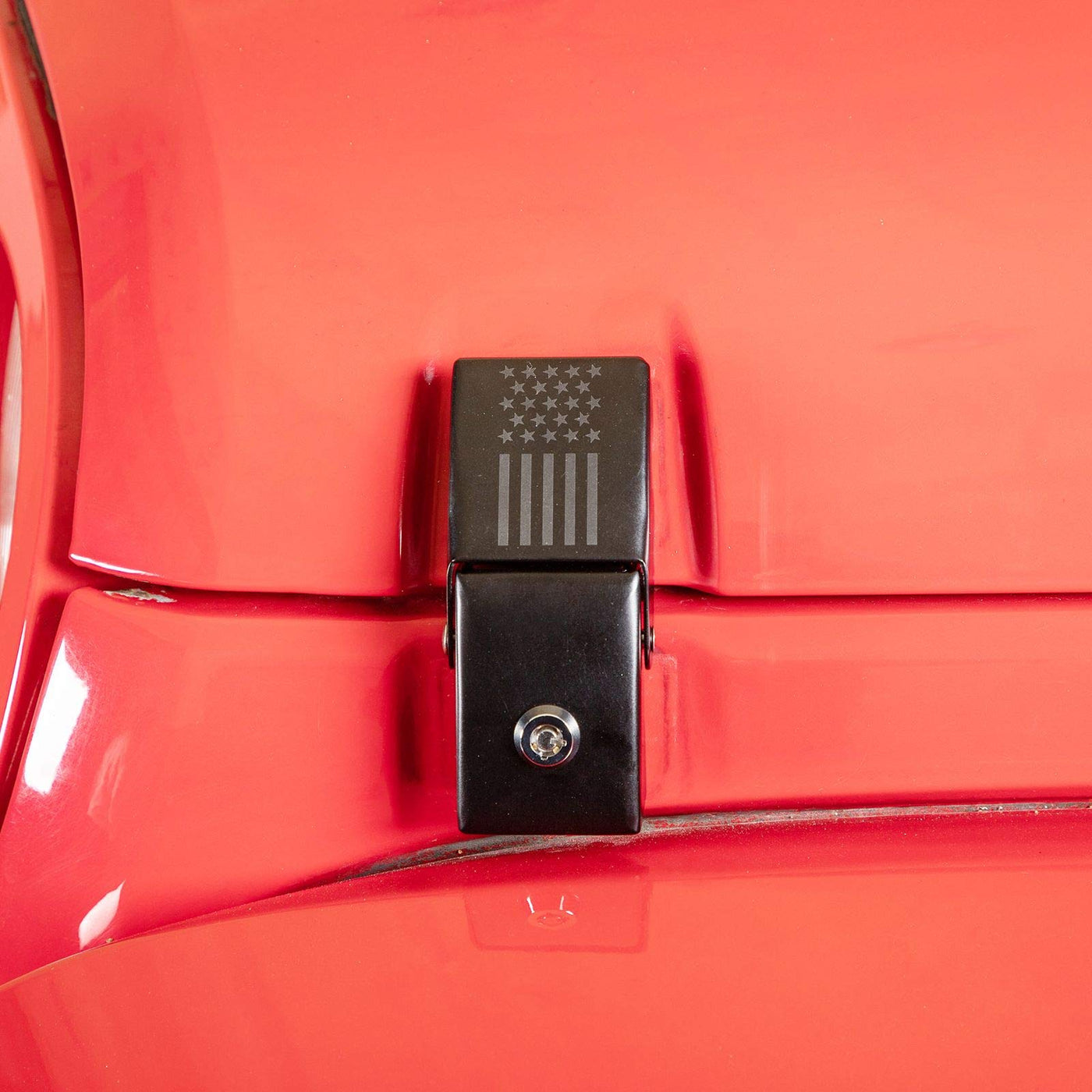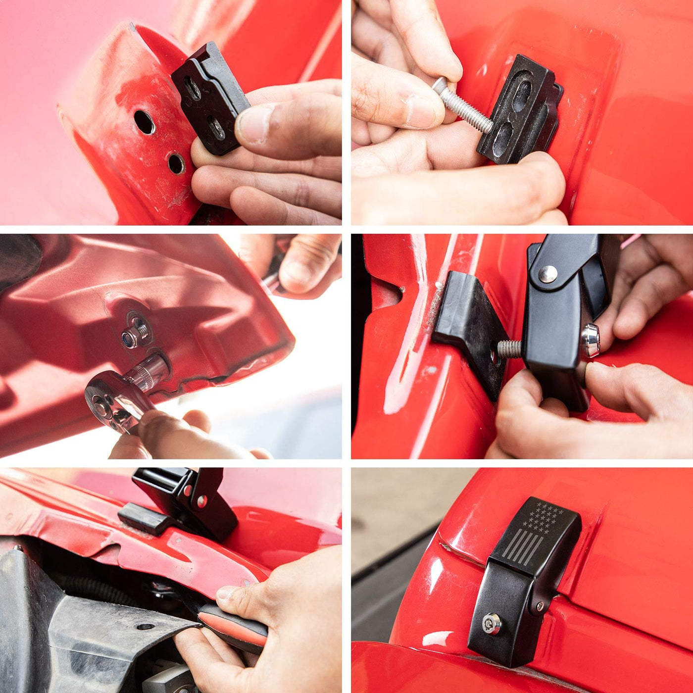 Features: Adjustable, sturdy Simple to use, no drilling needed Reduces hood flutter Upgrade Factory Hood Catches,quality assurance. U.S. Flag Style Aluminum build with stainless steel hardware