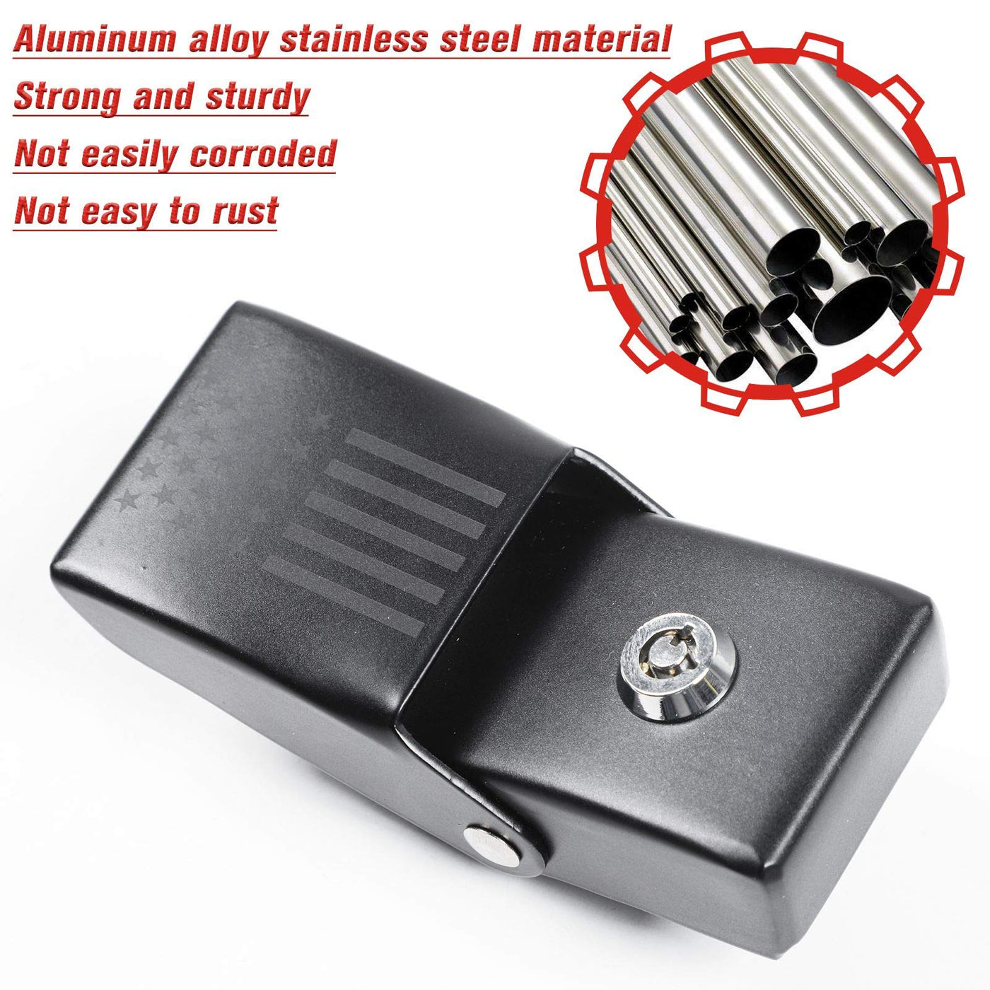 Item Description: Fitment:Fits for Jeep Wrangler JK JKU 2007 2008 2009 2010 2011 2012 2013 2014 2015 2016 2017 2018, for Jeep Wrangler JL JLU & Jeep Gladiator JT 2018 2019 2020 2021 2022 2023 2024+ Condition: 100% Brand New Material: Made of high-strength aluminum alloy and stainless steel Color: US flag Patten Lock Size (As the picture shown):105x43x22mm