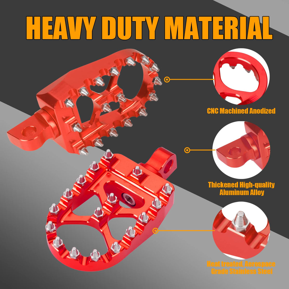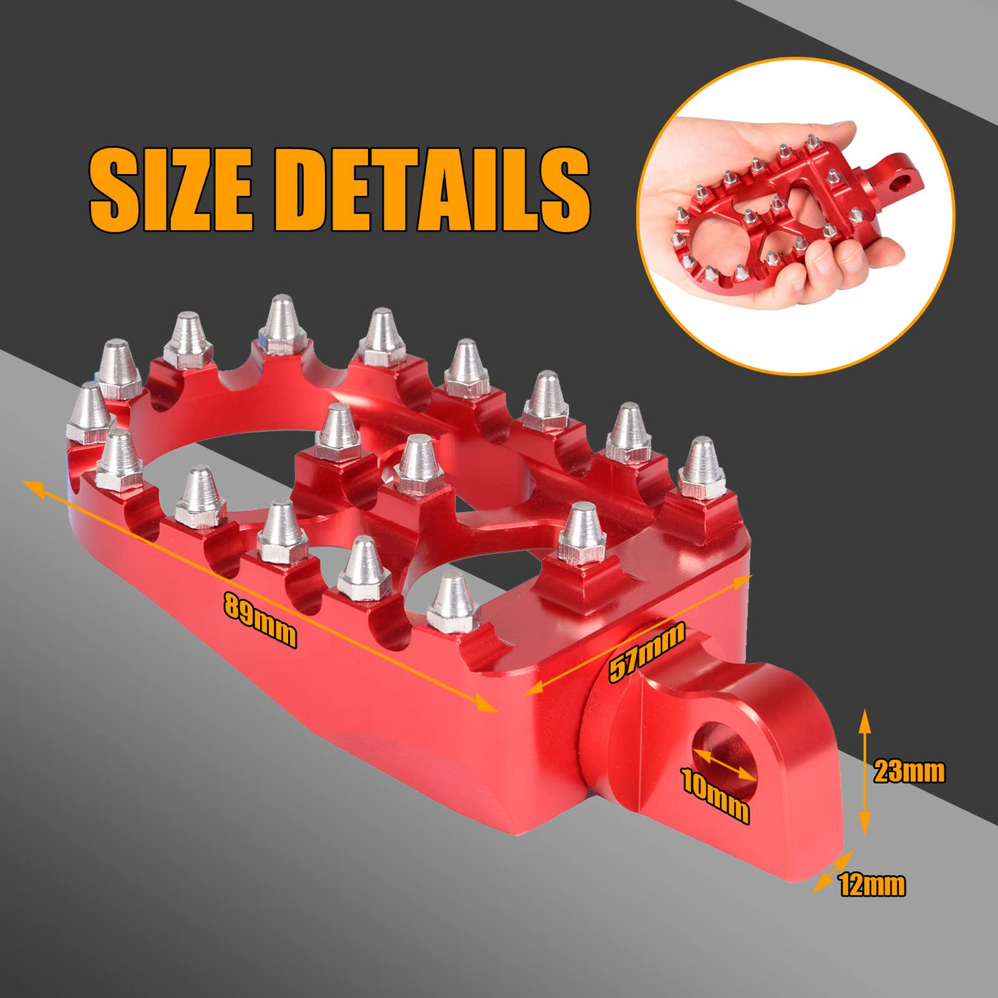 Q: Are the foot pegs durable and resistant to wear?A: Yes, the Sresk Offroad foot pegs are constructed from 7075-T6 aluminum and stainless steel, making them heavy-duty and wear-resistant. The sharp teeth made from hardened steel ensure excellent grip and longevity.