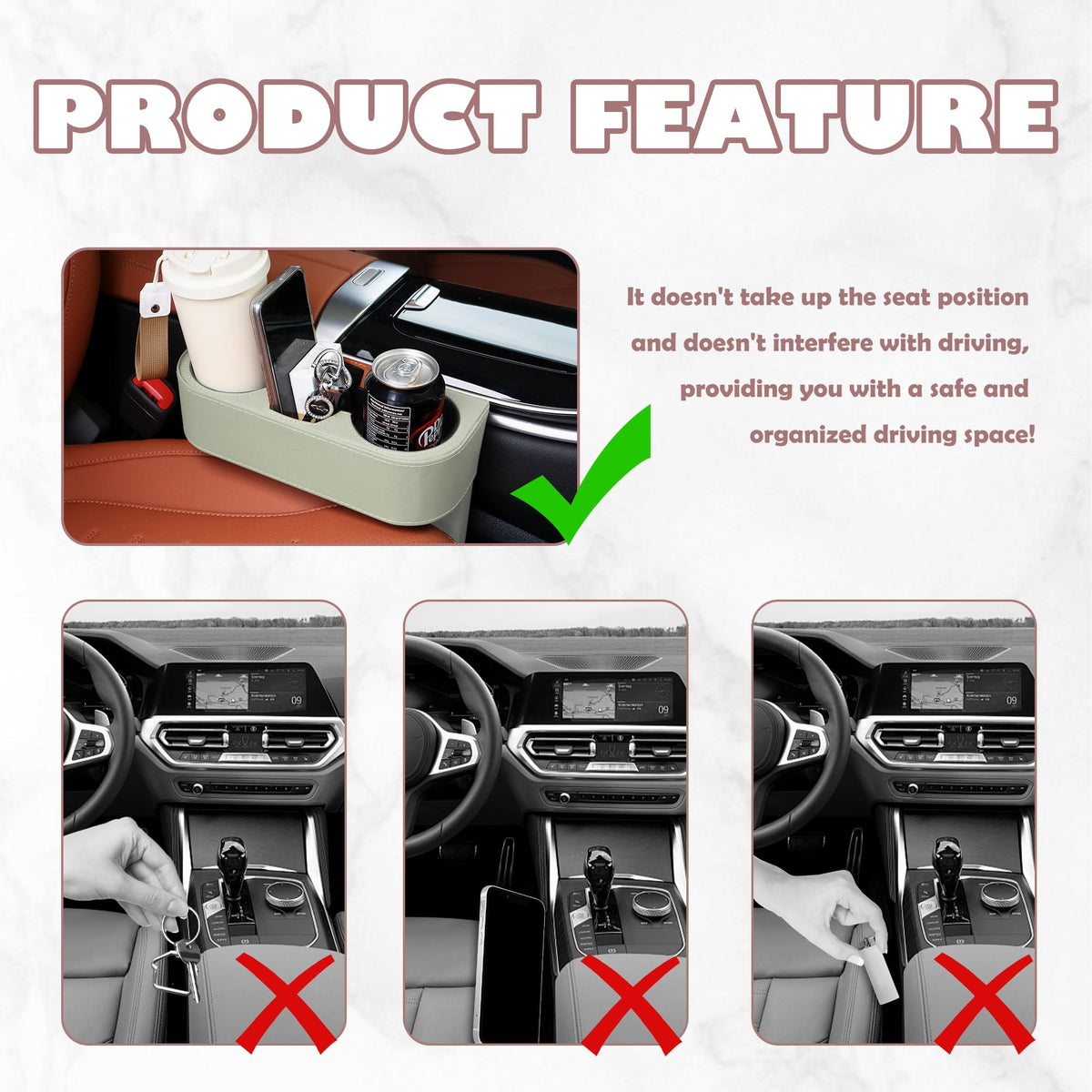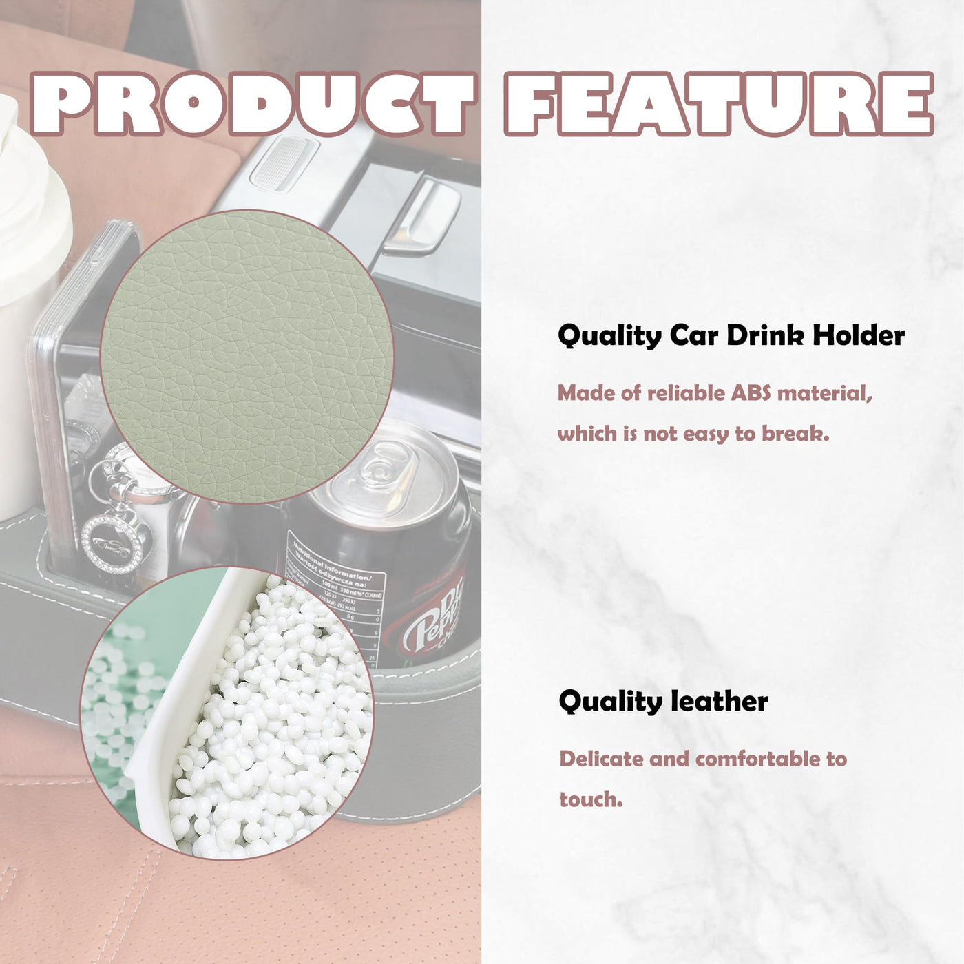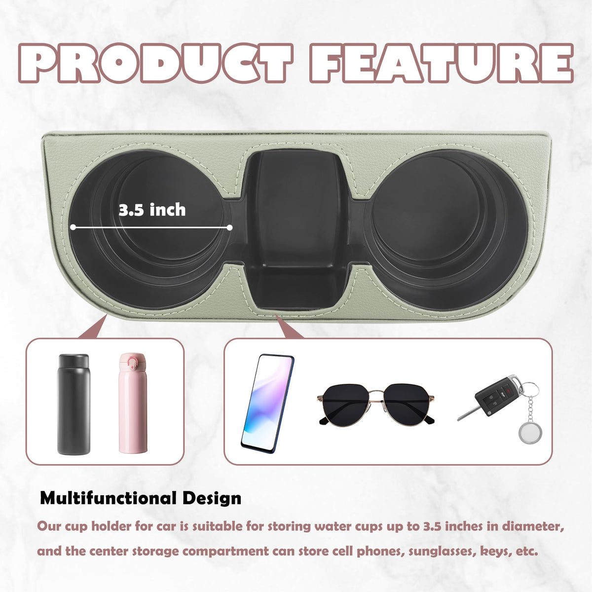 ??EXPAND YOUR IN-CAR STORAGE SPACE WITH THIS PREMIUM LEATHER CAR CUP HOLDER!??Do you often encounter the following troubles?1. Cell phones and other items fall into the gap.2. Cluttered items in the car.3. Can't find things when you need to use them.4. Trash falling into the gap is not easy to clean up.? These problems can be completely solved by using our gap organizer!??Product Information:? Size:Length: 11.02 inchWidth: 4.33 inchTotal Height: 8.27 inchCup Holder Height: 2.95 inchCup Storage Compartment Diameter: 3.5 inchCenter Storage Compartment Size: 3.5*2.0 inchCup & Center Storage Compartment Depth: 2.4 inch? Material: Leather? Color: Black, Brown, Beige, Gray? Packaging: 1 * Car Cup Holder??Product Feature & Function:? Feature: Premium, multi-functional, plug and play.? Function: For storing items such as cups and cell phones.