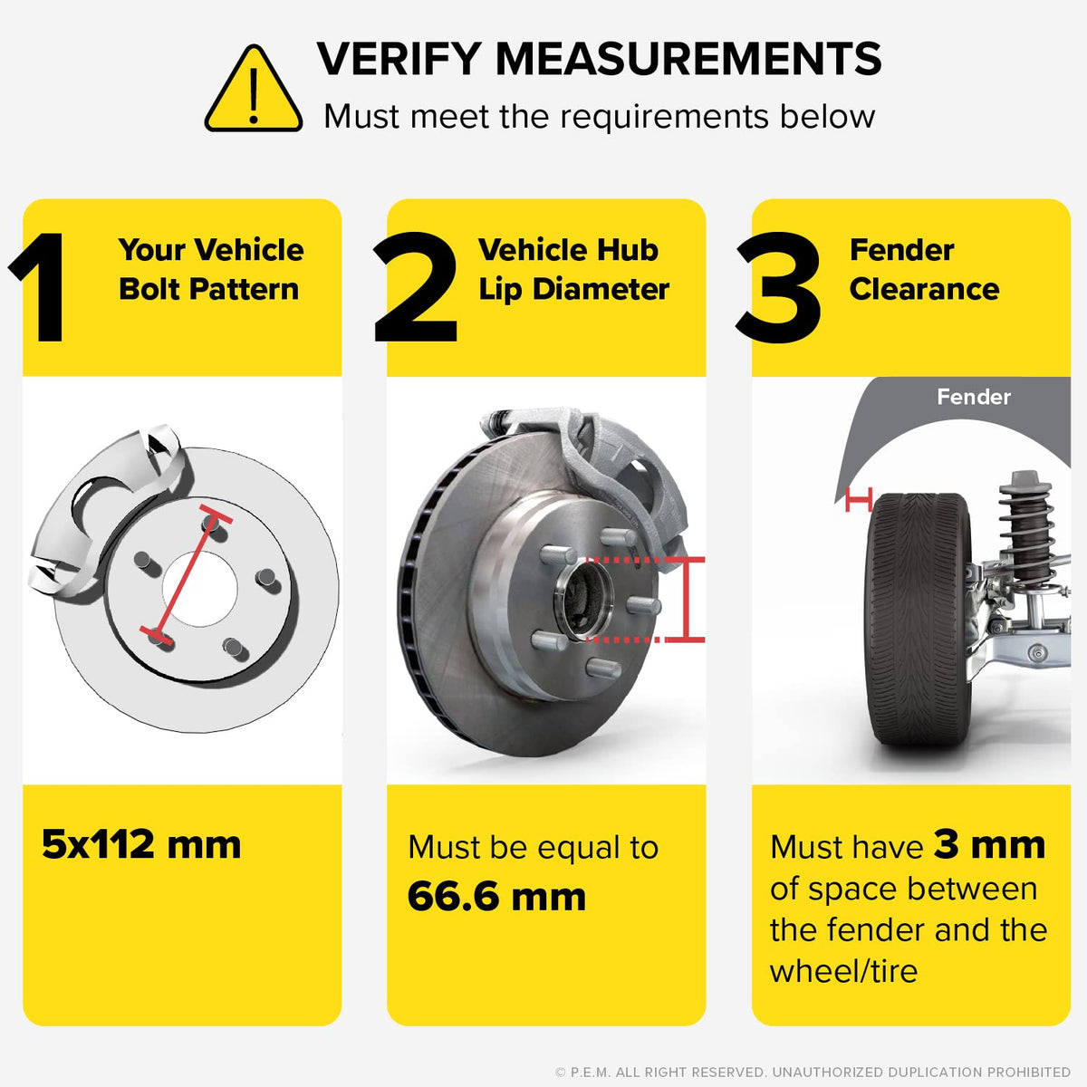 - Q: Are the StanceMagic Wheel Spacers safe to use? A: Yes, the StanceMagic Wheel Spacers are designed with safety in mind. They fit snugly around 66.6mm wheel hubs to prevent wobble or vibrations. However, it is crucial to ensure proper installation, verify compatibility with your vehicle, and check that you have adequate clearance of at least 3mm to avoid contact with the fender. Always follow installation guidelines, including using a torque wrench for tightening.