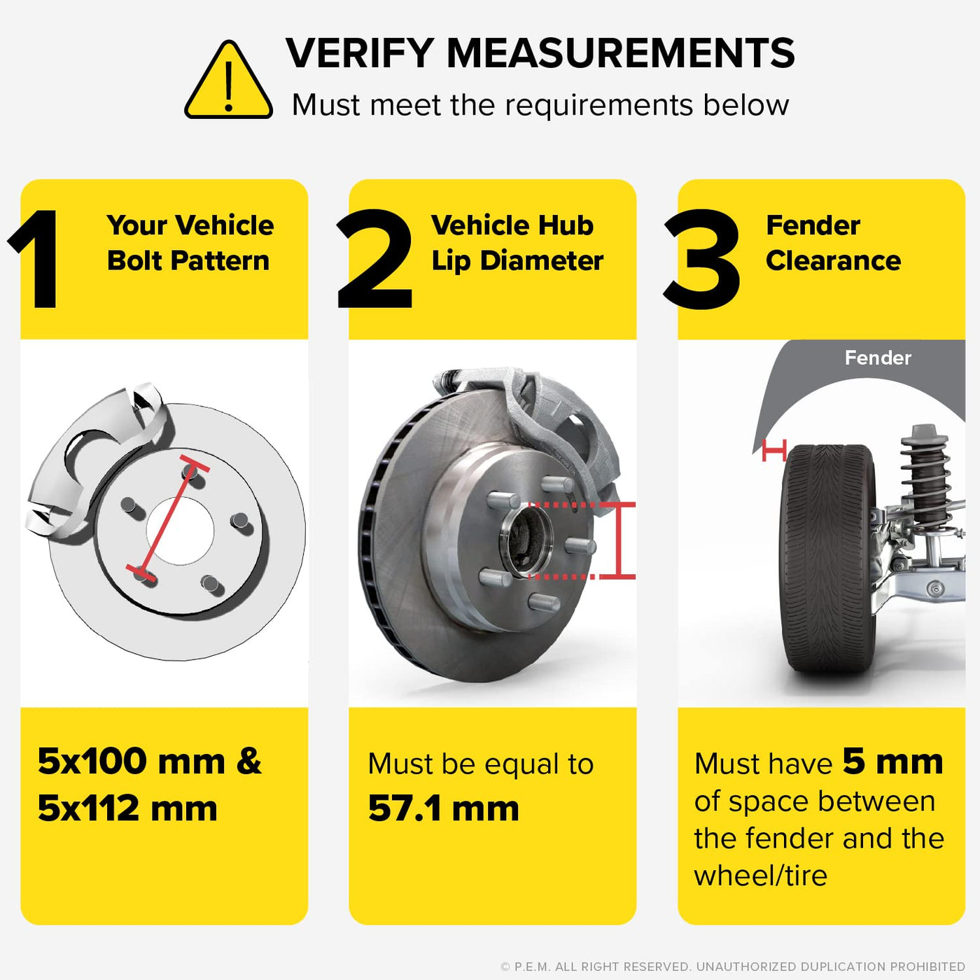 Special Cnc-Machined Cutouts Reduce Unsprung Weight By Up To 50% When Compared To Other Spacers On The Market. [ Fitments ] Compatible With Audi 2001-2005 Allroad Quattro, 1999-2020 Tt, 2000-2010 Tt Quattro, 1998-2019 A3, 2006-2016 A3 Quattro, 1996-2009 A4 , 1996-2008 A4 Quattro, 1992-2009 S4, 1995-2011 A6, 1996-2008 A6 Quattro, 1995-2011 S6, 1997-2008 A8, 1997-2008 A8 Quattro, 2001-2010 S8. Compatible With Volkswagen 1992-1994 Corrado (2.8L V6 Only), 1993-2021 Golf, 2006-2019 Gti, 1995-1999 Jetta Vr6, 1999-2021 Jetta, 1998-2021 Beetle, 2007-2016 Eos, 2009-2017 Cc, 1990-2021 Passat. Compatible With Chevrolet 1987-1996 Beretta, 1982-2005 Cavalier, 1980-1989 Celebrity, 1980-1986 Citation, 1987-1996 Corsica. Compatible With Chrysler 1995-2000 Cirrus, 1986-1989 Laser, 1989-1995 Lebaron, 1985-1993 New Yorker, 2001-2010 Pt Cruiser, 1996-2000 Sebring (Jx/Jxi Convertible). Compatible With Dodge 1985-1993 Daytona, 1994-2005 Neon, 1989-1995 Spirit, 1995-2006 Stratus. Compatible With Pontiac 1984-1988 Fiero, 1985-1998 Grand Am, 1982-1994 Sunbird, 1995-2005 Sunfire. Also Compatible With 1981-1998 Buick Skylark, 1992-1998 Oldsmobile Achieva. Warning: Read Before Purchase/Installation - Improper Installation, Incompatibility, Or Failure To Re-Torque Hardware Can Cause Loss Of Wheel And Result In Serious Accident, Injury Or Death - May Require Extended Wheel Studs Or Extended Lug Bolts (Not Included In This Listing). Buyers Need To Ensure To Get 6-9 Full Turns Of The Lugs When Tightening - A Torque Wrench Is Required. Don'T Use Air Or Impact Wrenches - Check And Re-Torque Nuts/Bolts Within 25-50 Miles Of Installation - Measure Wheel Gap For Clearance. You'Ll Need At Least 5Mm Of Clearance To Prevent Wheel/Tire From Touching The Fender