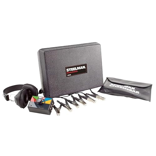 The STEELMAN 06600 ChassisEAR is a versatile electronic squeak and rattle finder that is designed to amplify sounds to allow users to listen and perform real time diagnostics during road tests to locate troubling automotive noises. Using one or all six of the included microphone clamps you can easily pinpoint the exact location of noises that signal damaging wear and possible part failure connected to issues that cannot be duplicated in the garage repair stall and heard with a standard mechanic's stethoscope. A set of included full-coverage, professional-style headphones shut out surrounding sound letting you focus on what the ultrasensitive microphones pick up. Each of the six clamps is color-coded and has a 16-foot wire lead to give you the reach you need to ensure that you can reach even the most difficult vehicle locations. Sensors easily clamp onto problem areas of cars and trucks including springs, torque rods, shocks, body mounts, brakes, dash assemblies, door hinges, drive trains, rear or front axles, transmissions, transfer cases, suspensions, sway bars, tie rod ends, struts, axle hubs, ring and pinion bearings, mufflers, catalytic converters, O2 sensors, A/T cases, oil pumps or even un-torqued bolts.STEELMAN is an industry leader in automotive and industrial specialty tools and equipment, manufacturing the highest quality, unique, and innovative tools and products, designed to meet the specific needs of mechanics, contractors, and other working professionals.