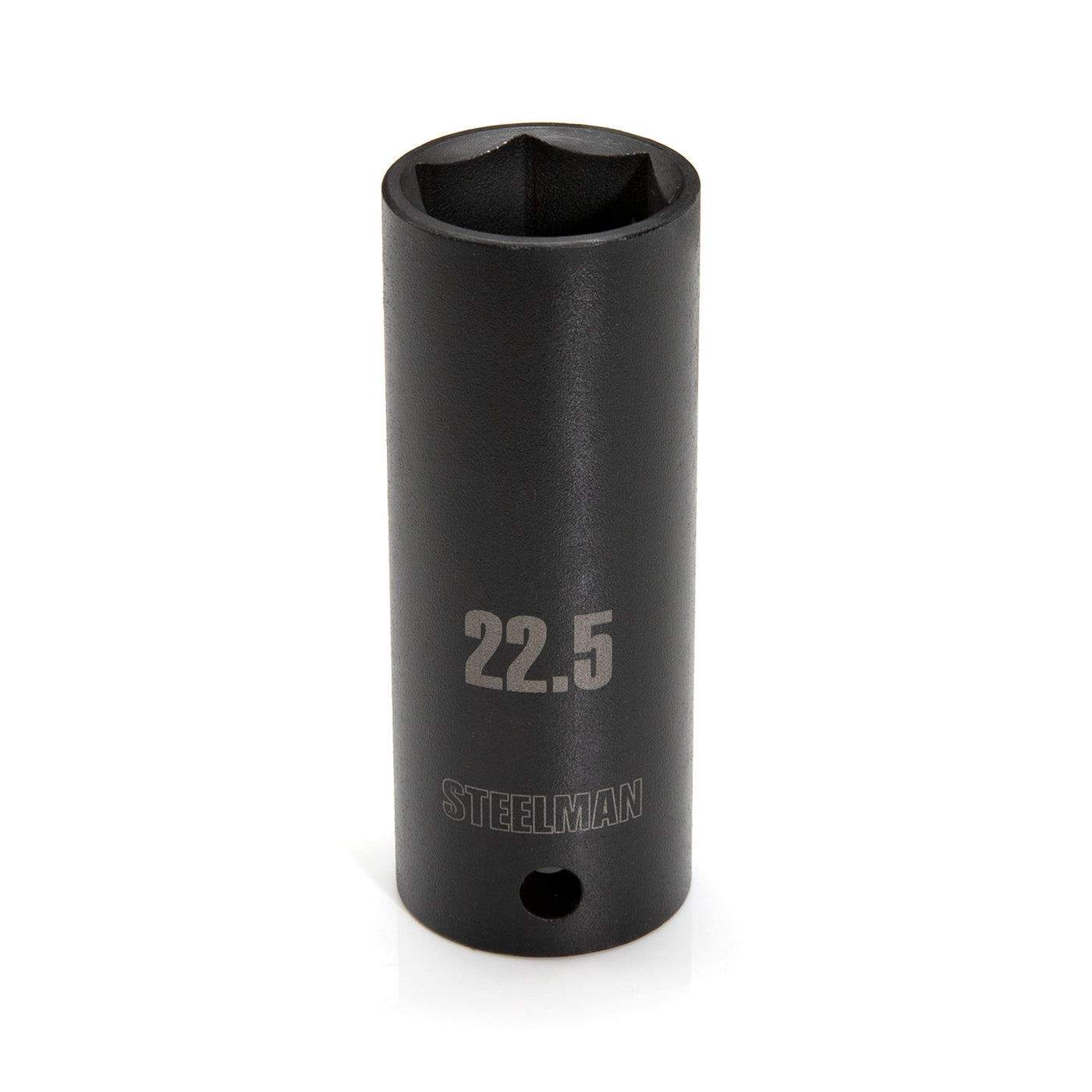 Q: What is the size of the Steelman 61022 socket?A: The Steelman 61022 socket is precision sized at 22.5mm, making it compatible with 22mm metric fasteners, especially those that may have been slightly deformed.