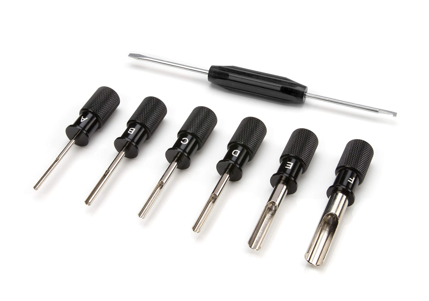 Deutsch Terminals Are Environmentally Sealed And Hold Tight In Extreme Conditions. So When It Comes Time To Replace Or Repair These Terminals And Wires, You Need Specialized Tools To Disassemble Them Without Harming The Electrical Components. The Steelman 7-Piece Deutsch Terminal Tool Kit Is Designed To Help Separate The Wires From Their Terminals Without Causing Damage To Either. The Tools Included In This Versatile Kit Are Compatible With Terminals Found In A Wide Variety Of Vehicles And Equipment, Including Cars, Motorcycles, Heavy-Duty Trucks, Construction And Agricultural Equipment, And Some Outboard Motors. The Kit Includes Tools To Fit 4, 8, 12, 14, 16, And 20 Gauge Wire Terminals As Well As A Combination Removal Tool / Flat Tip Screwdriver. Designed To Take The Aggravation Out Of Terminal Repair, The Tools Feature Non-Magnetic Stainless Steel Tips And Corrosion-Resistant Aluminum Handles. These Knurled, Black Anodized Aluminum Handles Provide A Secure, Non-Slip Grip During Use, And Each Handle Is Clearly Labeled For Quick Reference Against The Included Application Chart That Lists Tool Tips, Measurements, And Compatible Manufacturers. The Entire Kit Comfortably Fits In The Blow-Molded Plastic Tote Case For Easy Transport And Storage. Steelman Is An Industry Leader In Automotive And Industrial Specialty Tools And Equipment. We Manufacture High-Quality, Innovative Products Designed To Meet The Specific Needs Of Mechanics, Contractors, And Other Working Professionals. Our Selection Of Tools Includes Specialized Automotive Items Like Diagnostic Devices, Inspection Lights, Maintenance Tools, And Tire Repair Supplies, As Well As Traditional Hand Tools Like Torque Wrenches And Screwdrivers. So Whether You Are A Pro Mechanic Or A Do-It-Yourself Enthusiast, Steelman Has The Tools You Need To Get The Job Done.