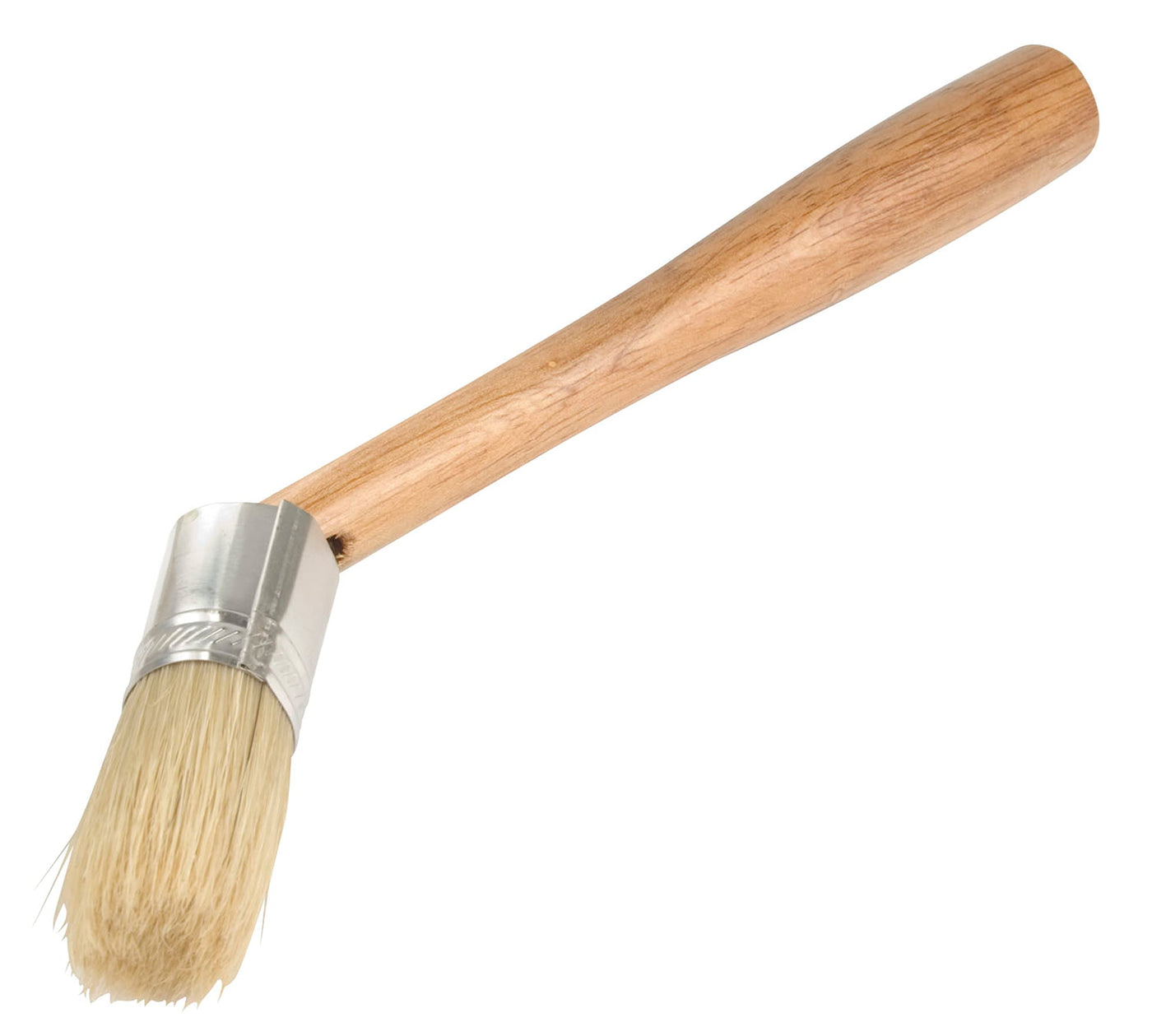 Angled applicator brush for euro white paste | Handle length: 7-3/4 inches | Brush length: 1-3/4 inches | Designed to the ideal angle to fit between the tire bead and rim