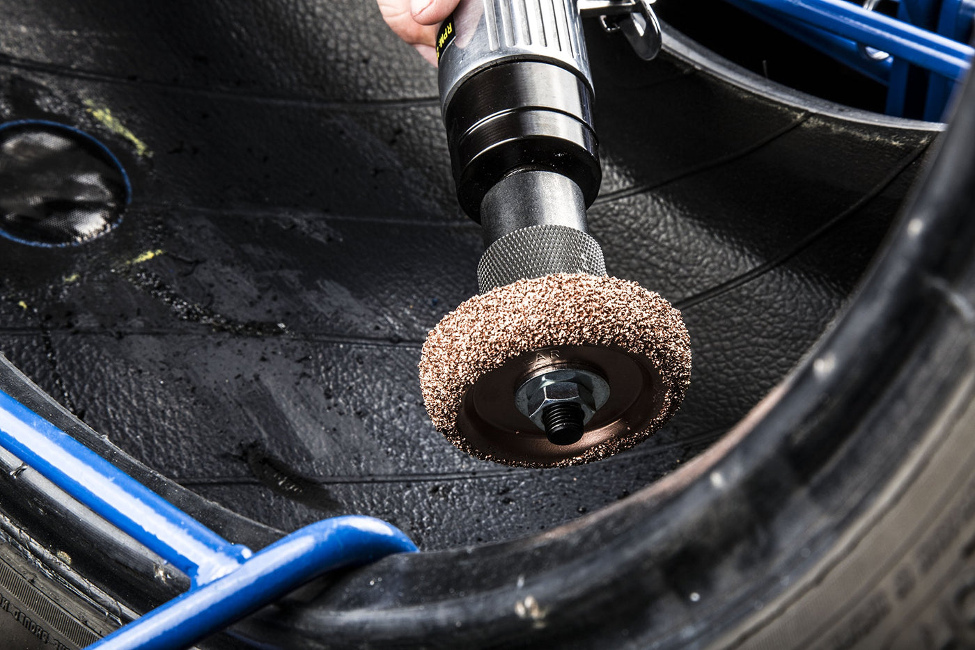 Q: What materials can the Steelman buffing wheel effectively work on?A: The Steelman Tungsten Carbide Buffing Wheel is specifically designed to efficiently bite into rubber materials, making it perfect for tire repair applications.