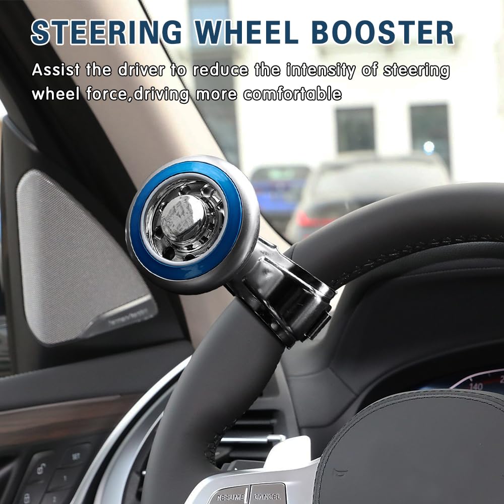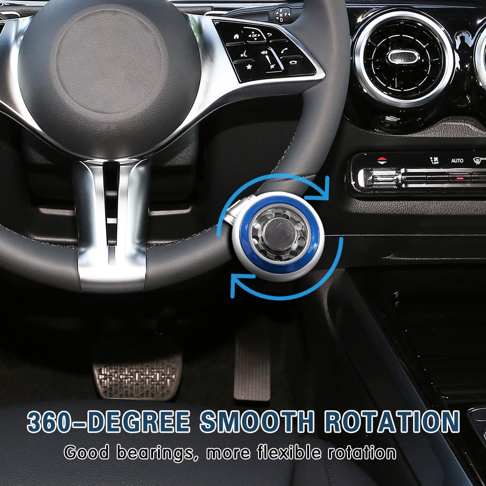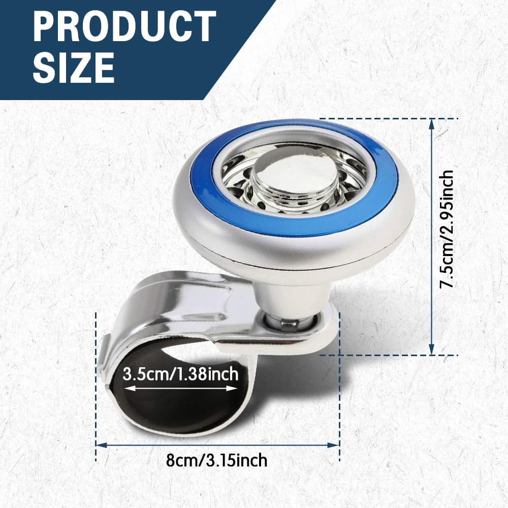 Specifications: Material: Stainless steel, ABS Size: 2.95 3.15 1.38inch Weight: 2.39 ounces Color: Silver, Blue, Red, Black Applicable model: Universal Fit for All Cars, Trucks, Semis Function: -The steering wheel rotation knob increases steering torque while simplifying one-handed steering, giving you smoother, easier, and more convenient control and normal driving during roadside stops and tight turns. -Vehicle steering wheel spinner knob using high-quality metal bearings, anti-slip and wear-resistant, both materials have unique robustness and high durability, and the force is more uniform when used, lowing the resistance of steering maneuvers.