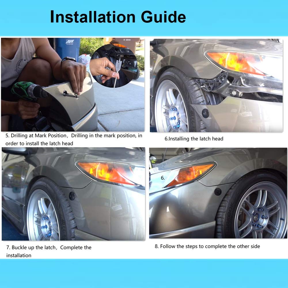 Example hood, Recommended use 6-8pcs Mini latch on the hood, Or choose a diameter of diameter 2.44 inches Latch, Only 2-4 pieces are required, Our shop has 2.44 inches diameter large Latches to choose from, Recommended use 2-4pcs Mini latch on the bumper side, Determine the number of uses based on the actual usage scenario