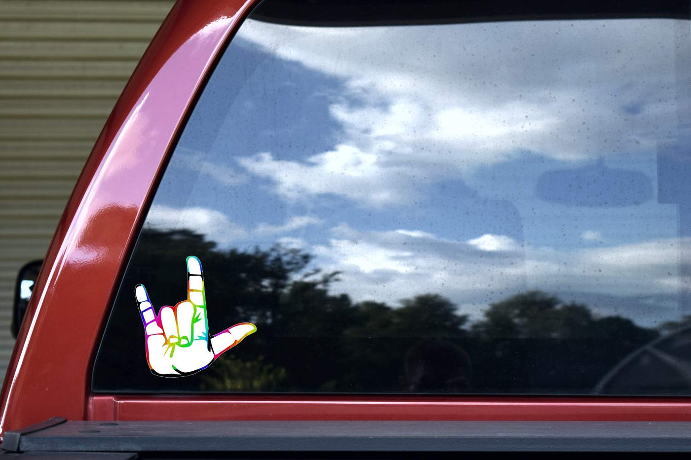 Stickertalk Rainbow Asl I Love You Vinyl Sticker, 5 Inches By 5 Inches