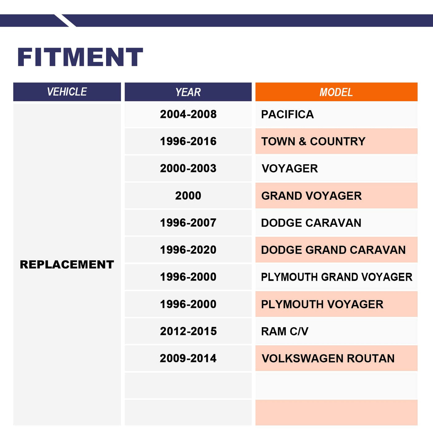What happens when car sway bar end link fails?Abnormal Soundsstabilizer bar suspension noise such as clunking,ratting or popping on rough roads.Uneven Tire TreadsIf you notice the tread is wearing down unevenly on your tires, or if you notice balding spots, this is often a symptom that the suspension isn't holding the car evenly, and therefore putting uneven amounts of pressure on the tires.Car Ride is Not SmoothWhen you begin to feel every bump in the road, or when every bump causes the vehicle body to ''bounce'' ,you should check if some of your sway link kit parts have been worn out.Drifting Or Pulling During TurnsWith a failing sway bar suspension, you'll often feel the vehicle ''drift'' or ''pull'' when turning. Feature:Easy To TurnEasy To InstallReduce The NoiseStrong And DurableProtecting The TireBetter Anti-roll ControlImproving Driving ComfortImproving Driving StabilityItem Specifics:Material: SteelQuantity:pair 2Condition : New2x Front Driver Stabilizer / Sway Bar End Links - K7258Fit:2004-2009 Pacifica 1996-2016 Town&Country 2000-2003 Voyager 1996-2018 Grand Caravan 2009-2014 RoutanNote:Please check your old sway bar suspension, pictures and OEM part number before purchase to ensure they are suitable for your vehicle. If you have any questions, please contact us by amazon.