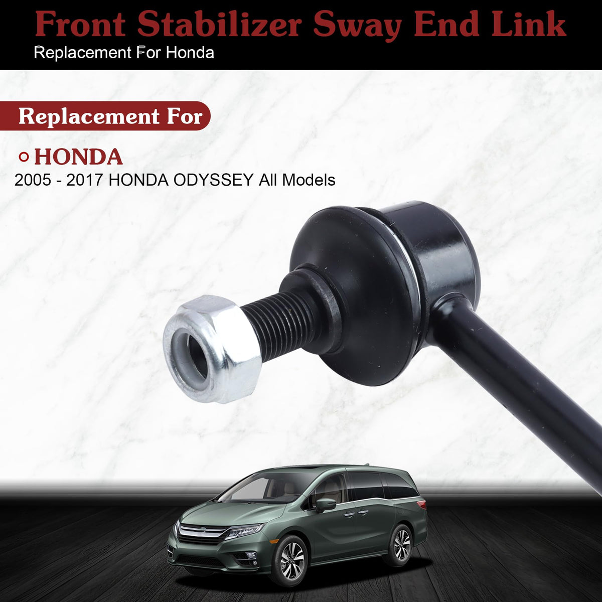 ?Fitment?Sway Bar Link compatible with 2005-2017 Odyssey | ?Replacement part number?Front Stabilizer End Link Rerlaces#K750304 | ?High Quality?We aim to be the best quality Sway Bar End Links manufacturer. All of our products use the highest quality raw materials.We have the advanced laboratory equipment to test products. The quality can completely replace OE Parts. | ?Better experience?There are several benefits that can be gained from a timely replacement of the sway bar end link:1.Improved handling,making the vehicle more stable and easier to control, especially during cornering.2.Better stability: making the ride smoother and more comfortable.3.Quieter ride: reduce noise and vibration, making the ride quieter and more pleasant. | ?Excellent after-sales service?We All our customers enjoy Lifetime Money Back Guarantee.Customers can return and get refund in case the purchasing is not satisfactory for any reason. We offers 24 hours quick-reply and friendly customer service.Thank you for your support.