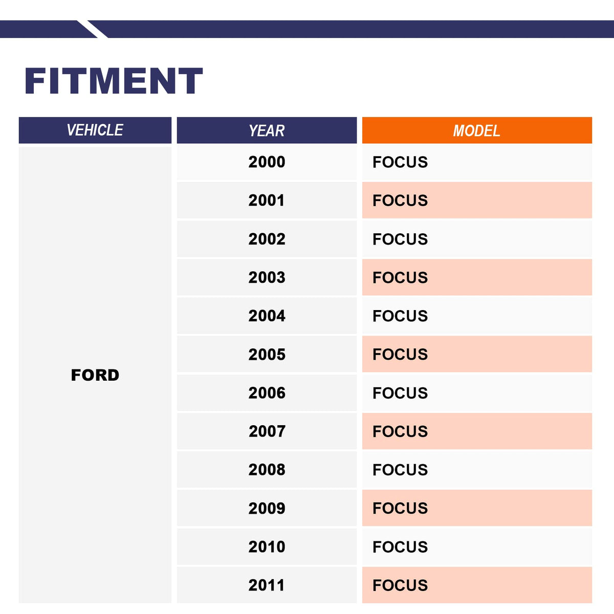 What happens when car sway bar end link fails?Abnormal Soundsstabilizer bar suspension noise such as clunking,ratting or popping on rough roads.Uneven Tire TreadsIf you notice the tread is wearing down unevenly on your tires, or if you notice balding spots, this is often a symptom that the suspension isn't holding the car evenly, and therefore putting uneven amounts of pressure on the tires.Car Ride is Not SmoothWhen you begin to feel every bump in the road, or when every bump causes the vehicle body to ''bounce'' ,you should check if some of your sway link kit parts have been worn out.Drifting Or Pulling During TurnsWith a failing sway bar suspension, you'll often feel the vehicle ''drift'' or ''pull'' when turning. Feature:Easy To TurnEasy To InstallReduce The NoiseStrong And DurableProtecting The TireBetter Anti-roll ControlImproving Driving ComfortImproving Driving StabilityItem Specifics:Material: SteelQuantity:pair 2Condition : New2x Front Driver Stabilizer / Sway Bar End Links - K80066Fit:2000-2010 FocusNote:Please check your old sway bar suspension, pictures and OEM part number before purchase to ensure they are suitable for your vehicle. If you have any questions, please contact us by amazon.