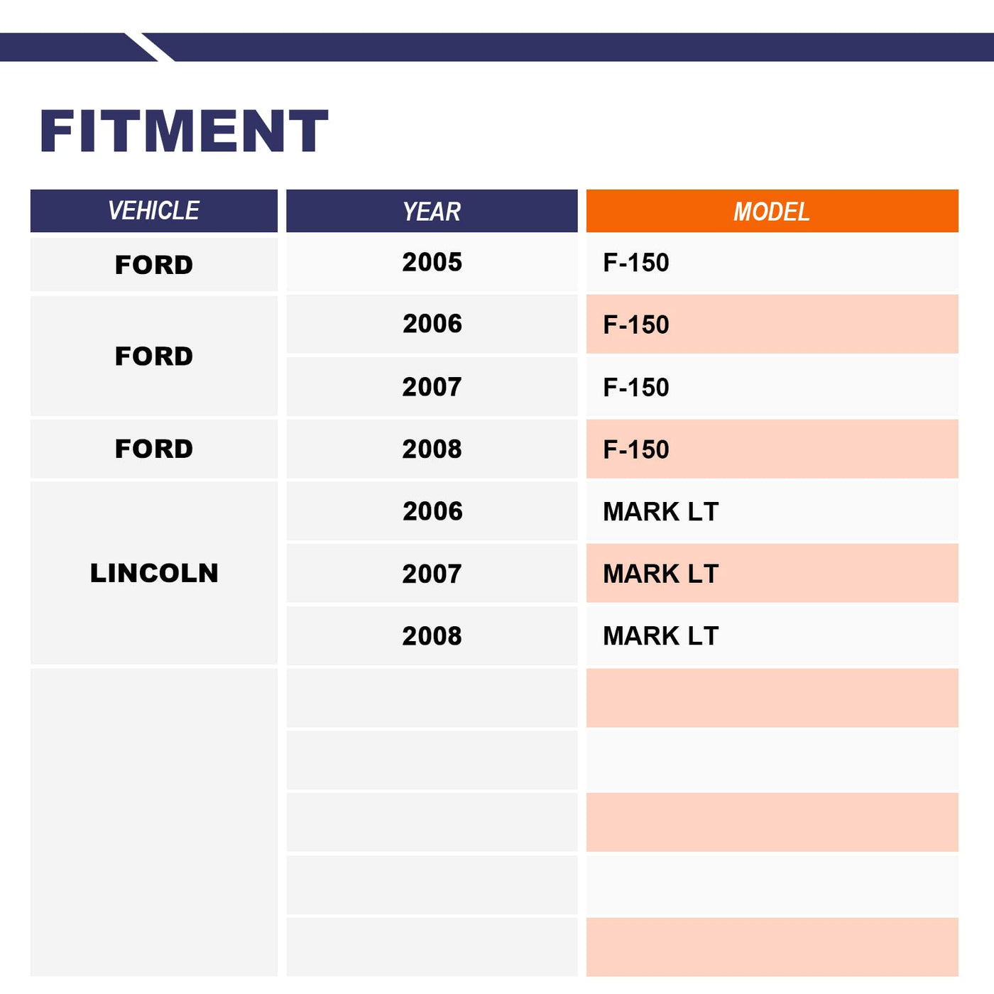 What happens when car sway bar end link fails?Abnormal Soundsstabilizer bar suspension noise such as clunking,ratting or popping on rough roads.Uneven Tire TreadsIf you notice the tread is wearing down unevenly on your tires, or if you notice balding spots, this is often a symptom that the suspension isn't holding the car evenly, and therefore putting uneven amounts of pressure on the tires.Car Ride is Not SmoothWhen you begin to feel every bump in the road, or when every bump causes the vehicle body to ''bounce'' ,you should check if some of your sway link kit parts have been worn out.Drifting Or Pulling During TurnsWith a failing sway bar suspension, you'll often feel the vehicle ''drift'' or ''pull'' when turning. Feature:Easy To TurnEasy To InstallReduce The NoiseStrong And DurableProtecting The TireBetter Anti-roll ControlImproving Driving ComfortImproving Driving StabilityItem Specifics:Material: SteelQuantity:pair 2Condition : New2x Front Driver Stabilizer / Sway Bar End Links - K80338Fit:Ford F-150 2005-2008 Lincoln Mark LT 2006-2008Note:Please check your old sway bar suspension, pictures and OEM part number before purchase to ensure they are suitable for your vehicle. If you have any questions, please contact us by amazon.