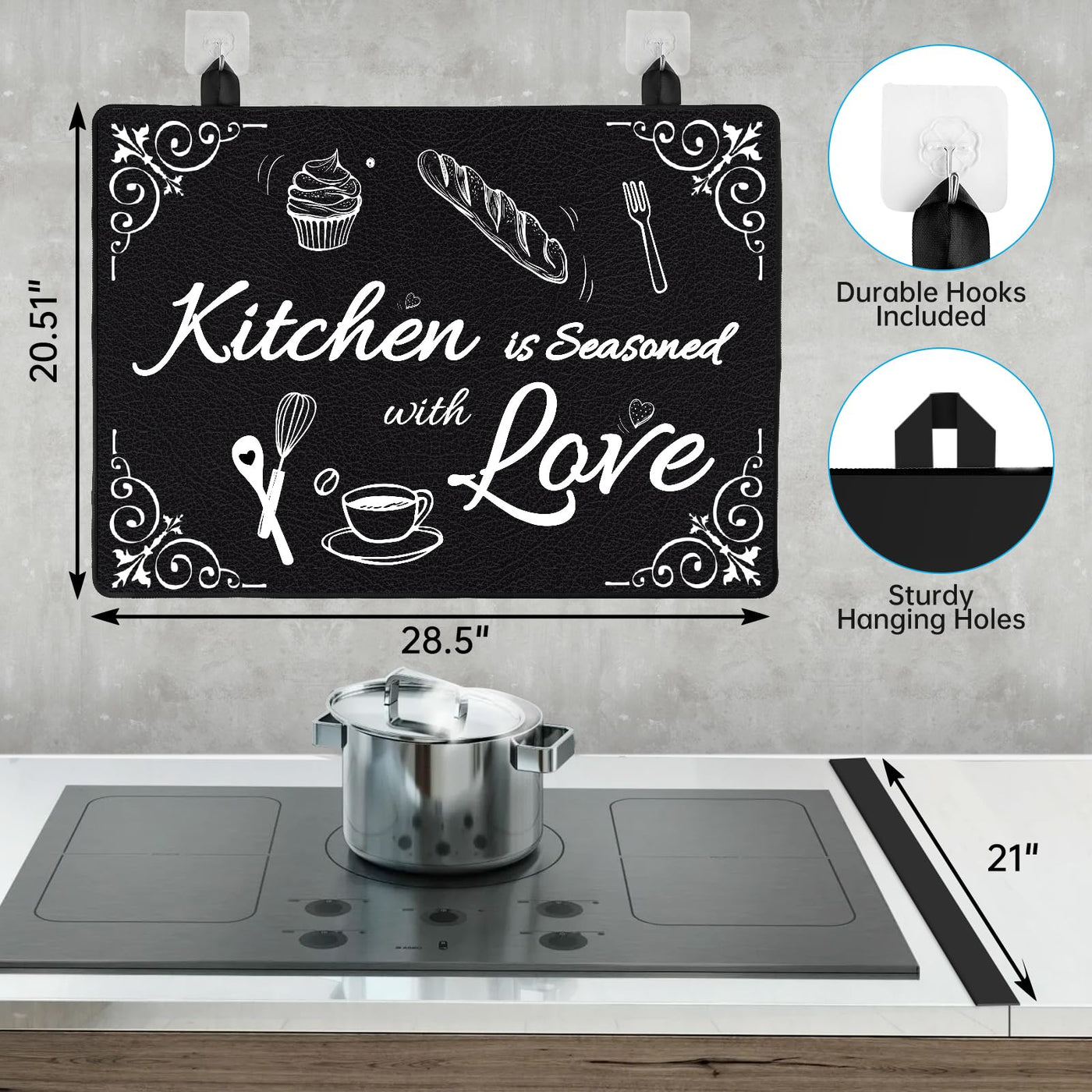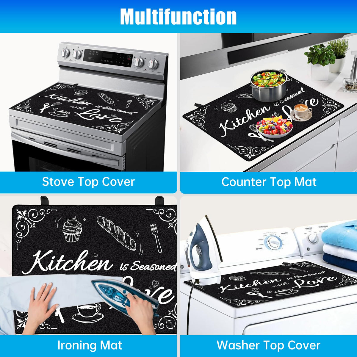 Stove Top Covers for Electric Stove, 28.5x20.5' Heat Resistant Glass Stovetop Protector Cover, Multifunctional Protector Mat for Counter/ Washer Top, with Silicone Stove Gap Covers, Dish Washer Safe
