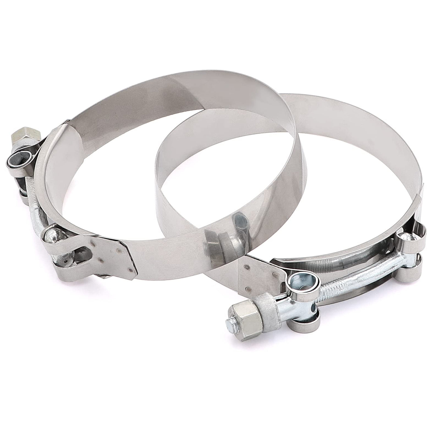 Q: Does this product include any installation accessories?A: Yes, the product comes with two stainless steel T-bolt clamps, which are essential for securely fastening the coupler to the piping.