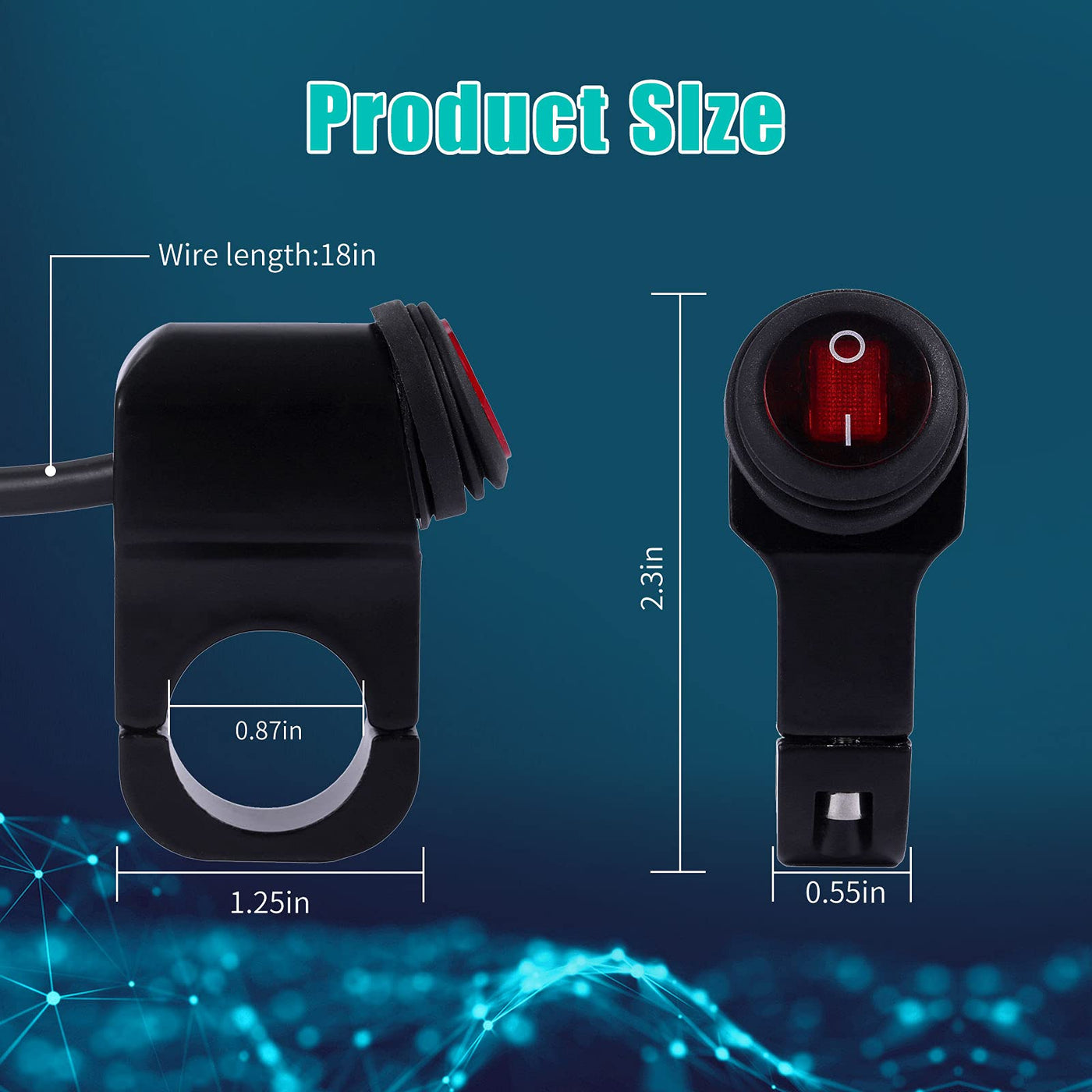 Stylemafia Waterproof Motorcycle ATV LED Light Bar Switch, Headlight Fog Light Spotlights aux Light Switch for 12V ATV Mini Bike Dirt Bike - Fits 7/8'' Handlebars Red