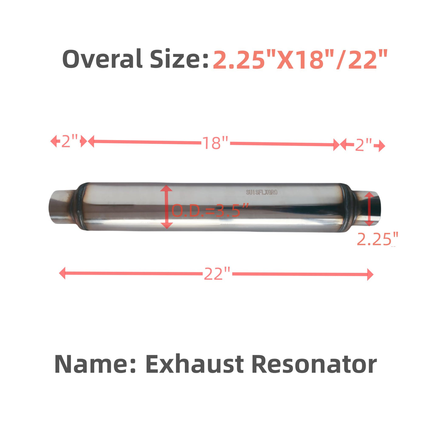 SUISFLXGRO Exhaust Resonator Muffler, Straight Through Design, Low and Deep Sound, Made of 100% Stainless Steel (2.25X 18/22)