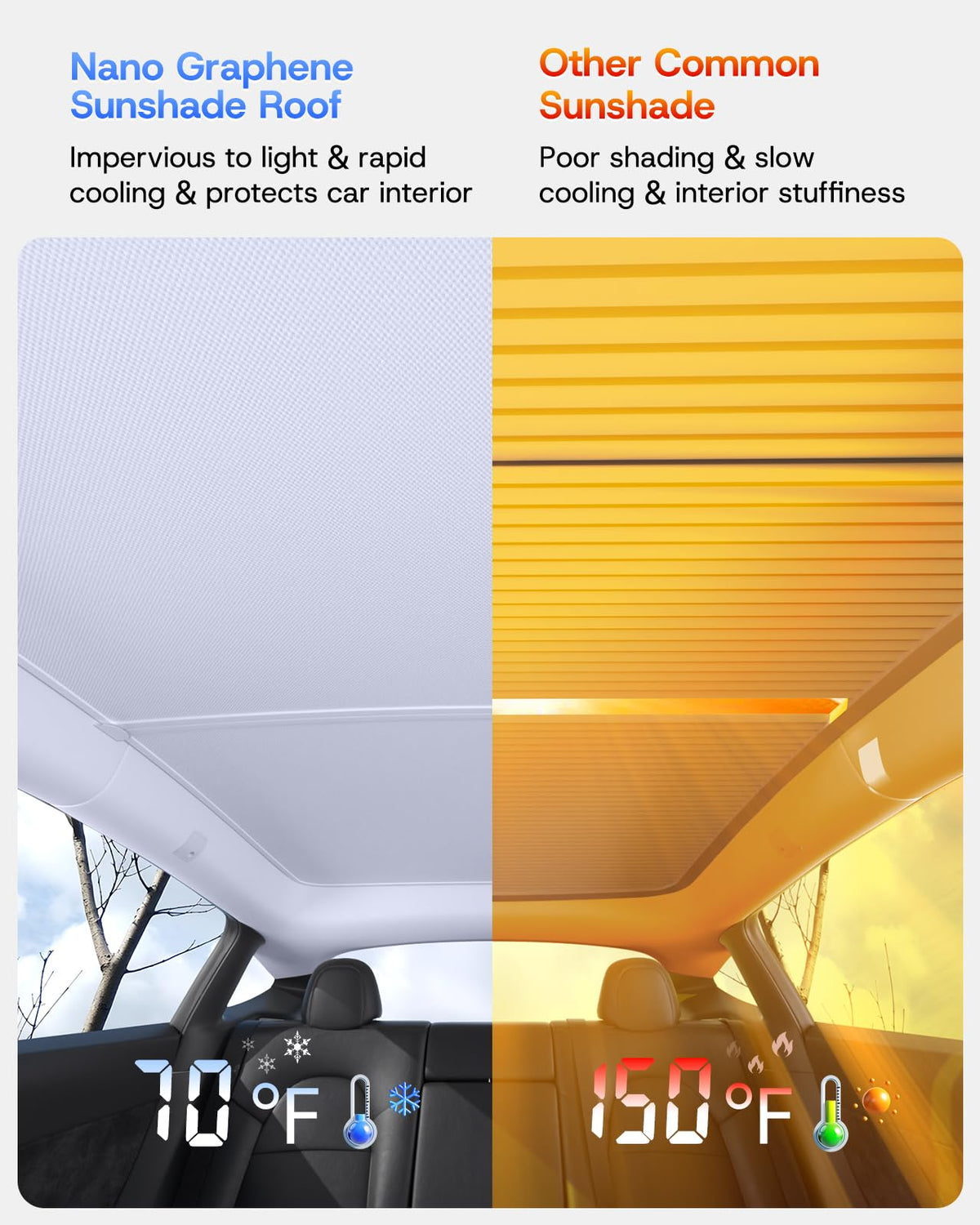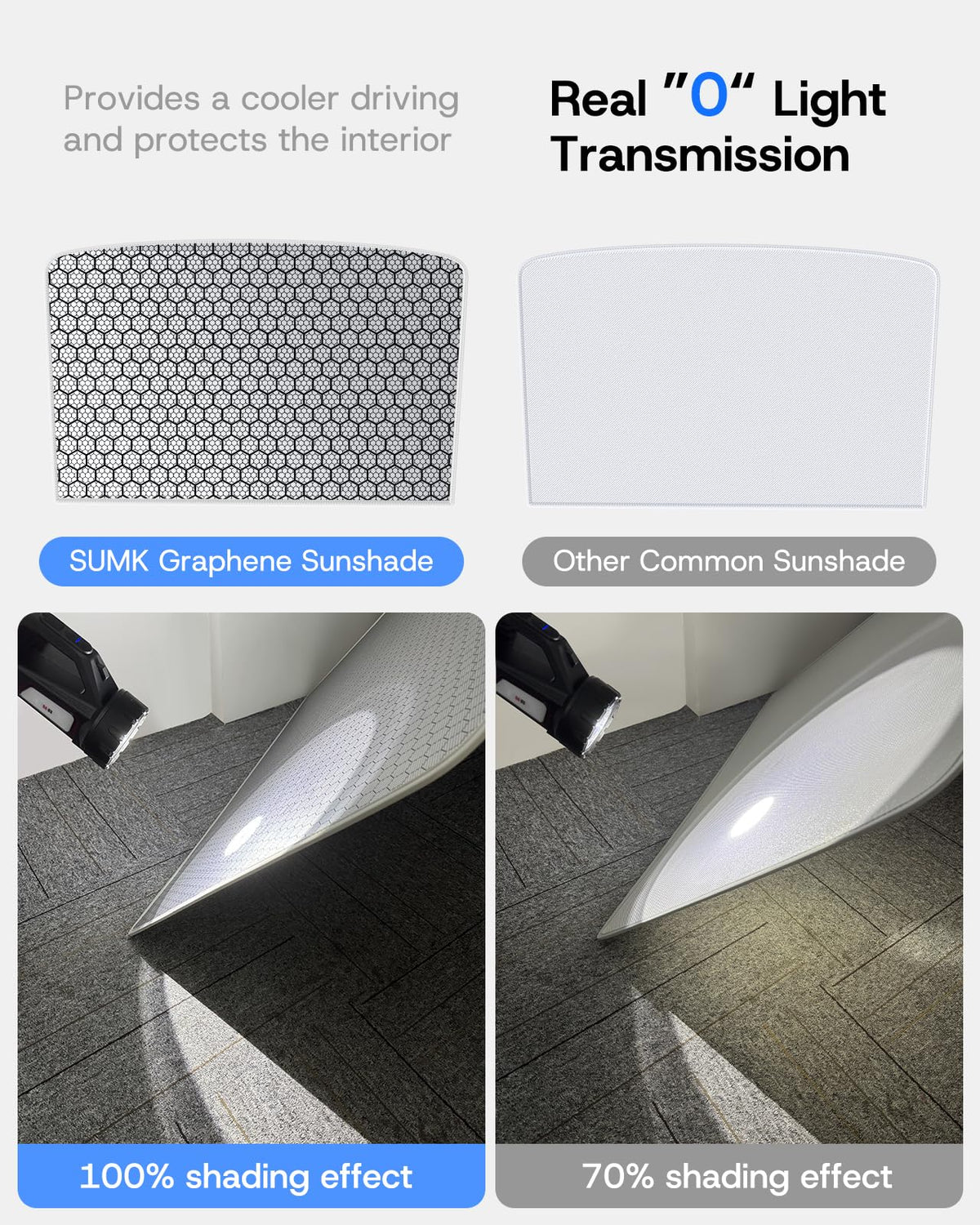SUMK 2025 Upgrade Sunshade Roof for Tesla Model Y Accessories, [Graphene Cooling Tech & High Density Honeycomb] No Sag & No Ligh