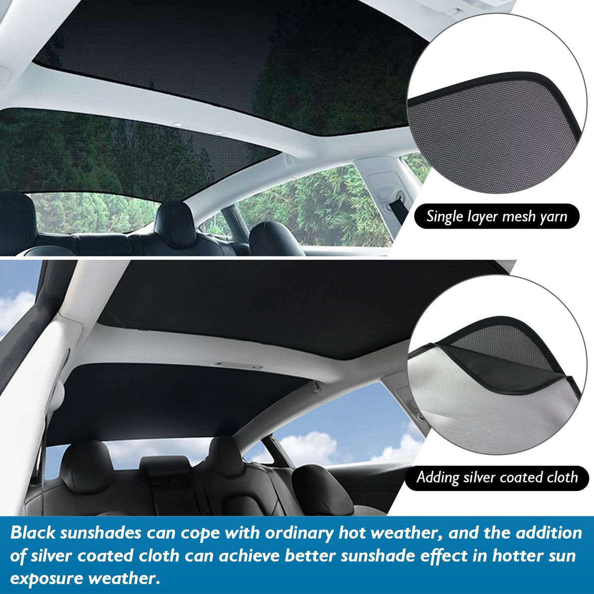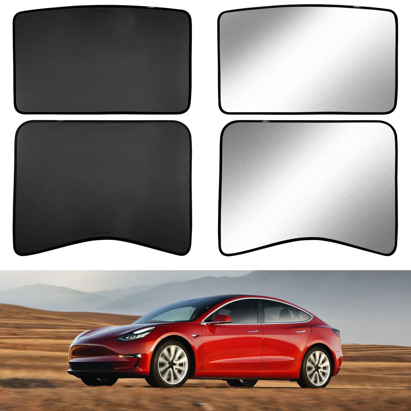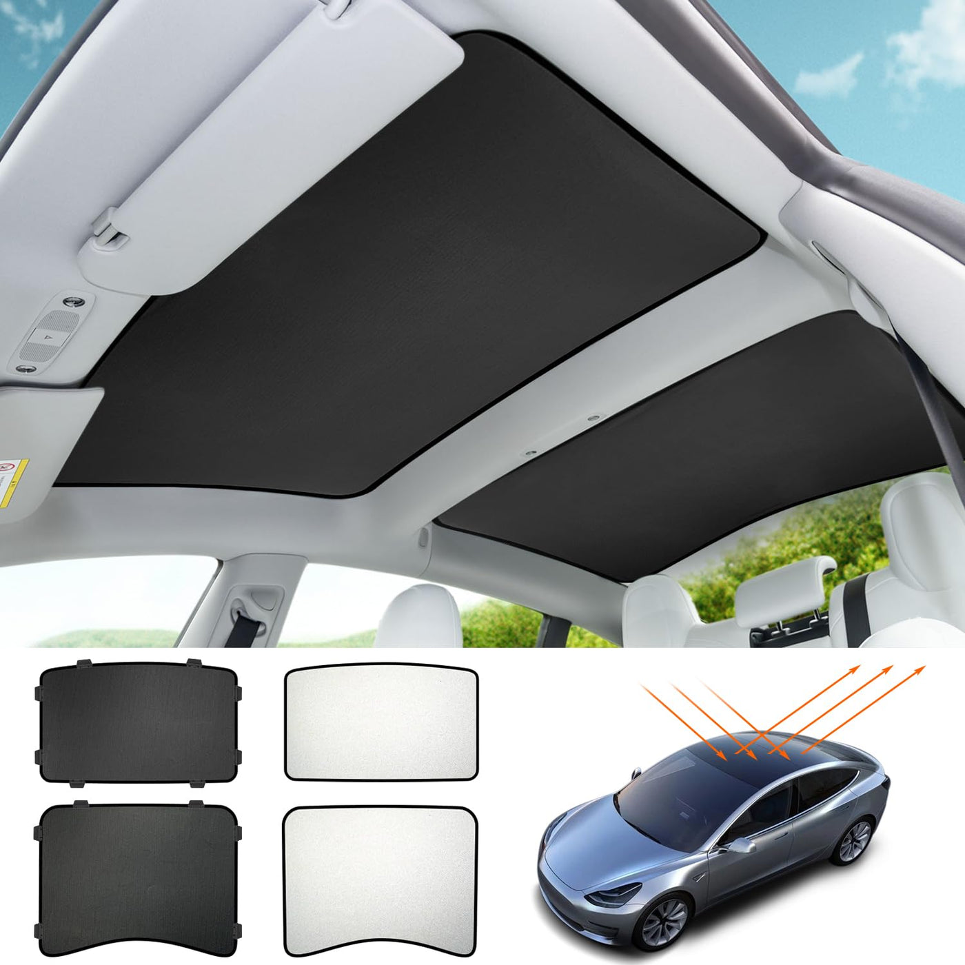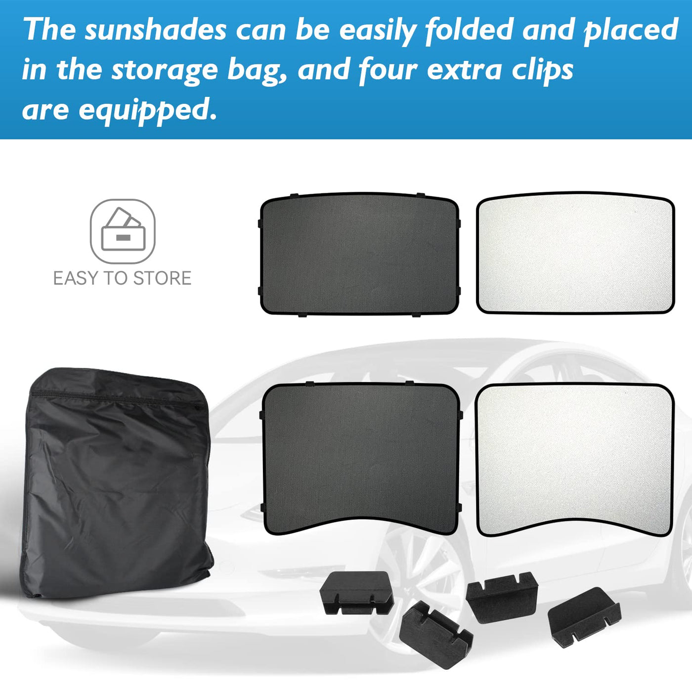 SUMK Roof Sunshade for Tesla Model 3 2023 2022 2021, Foldable Top Glass Sunshade for Tesla Model 3 Accessories with Detachable Skylight Reflective Covers - 4pcs
