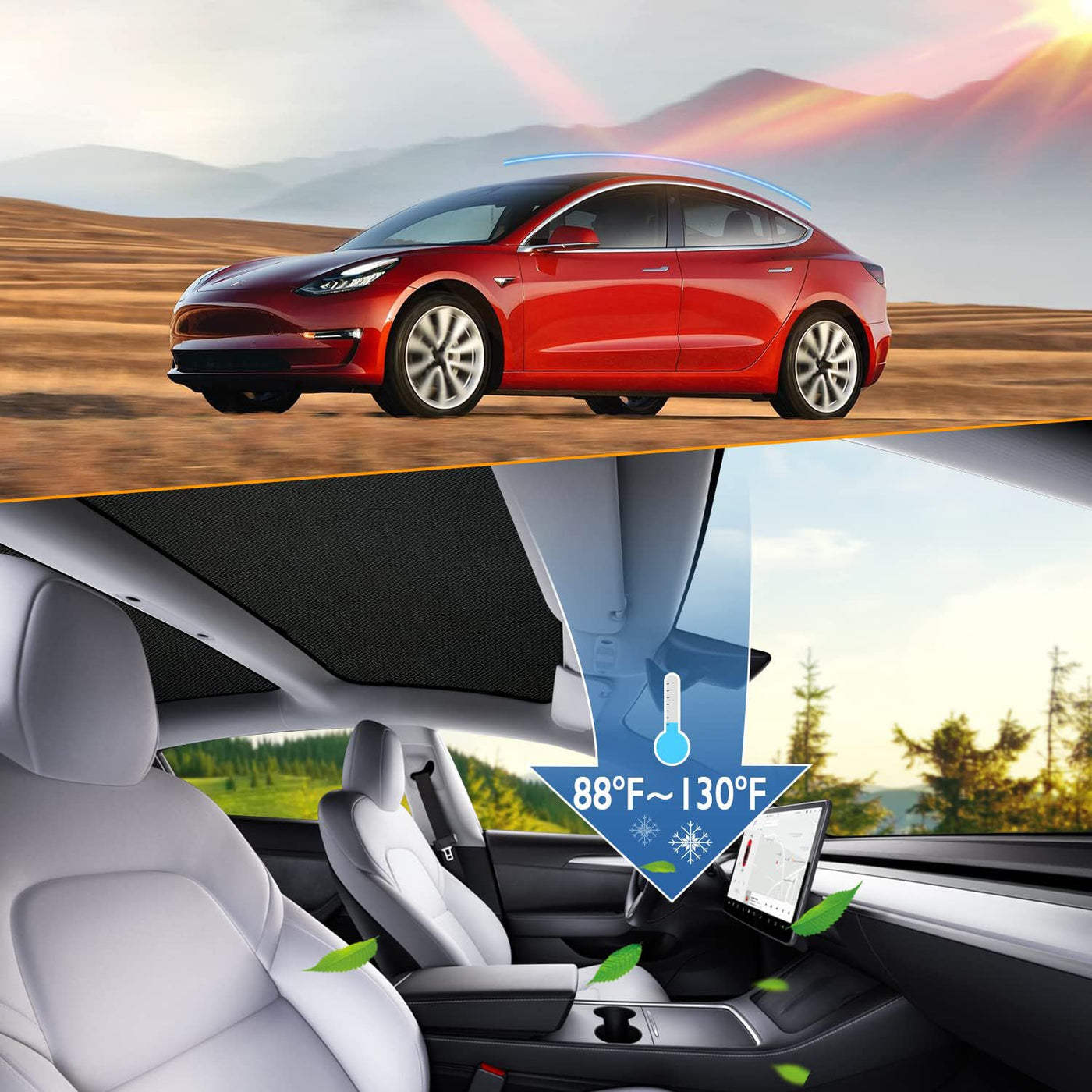 2021 Tesla Model 3 Accessories Glass Roof Sunshade Sunroof Rear Window Sunshade Compatible for Tesla Model 3 Sunshade 2021 With Skylight Reflective Covers Set of 4(4 of Set) Features: 1.It uses light weight mesh fabric with a collapsible rigid frame; the Model 3 Glass Roof Sunshade further reduces heat transmission into the cabin by blocking two-thirds of solar thermal load. 2.It can prevent sunlight from entering the car directly, so it has a heat insulation effect. 3.It works great since it is intended to be a shade against sunlight and a heat insulator. 4. Easily install and easily removable, the sunshade is installed onto the interior of the glass roof with provided clips. When removed, the shades collapse and store in a handy pouch.5. Custom fit for Tesla model 3 2021, designed this sunshade after measure it’s size, already tested on the model 3 for many times, the size is correct, With Skylight Reflective Covers,you can use it, it will blcok more sun light.If you want to see the views outside, you can just remove the two With Skylight Reflective Covers. Package: 1.One piece Tesla Model 3 Top Roof Sunshade(the small one) 2.One piece Tesla Model 3 Rear Roof Sunshade(the Arc one) 3. 10 pieces of sunshade clips, 4 for front, 4 for rear, 2 spare 4. 1 x storage pouch Note: The size is customized for tesla model 3 and tested on different model 3 many times, If you have any question about how to install it, please feel free to contact us/seller. We will reply you within 24 hours and solve your problems as soon as possible.