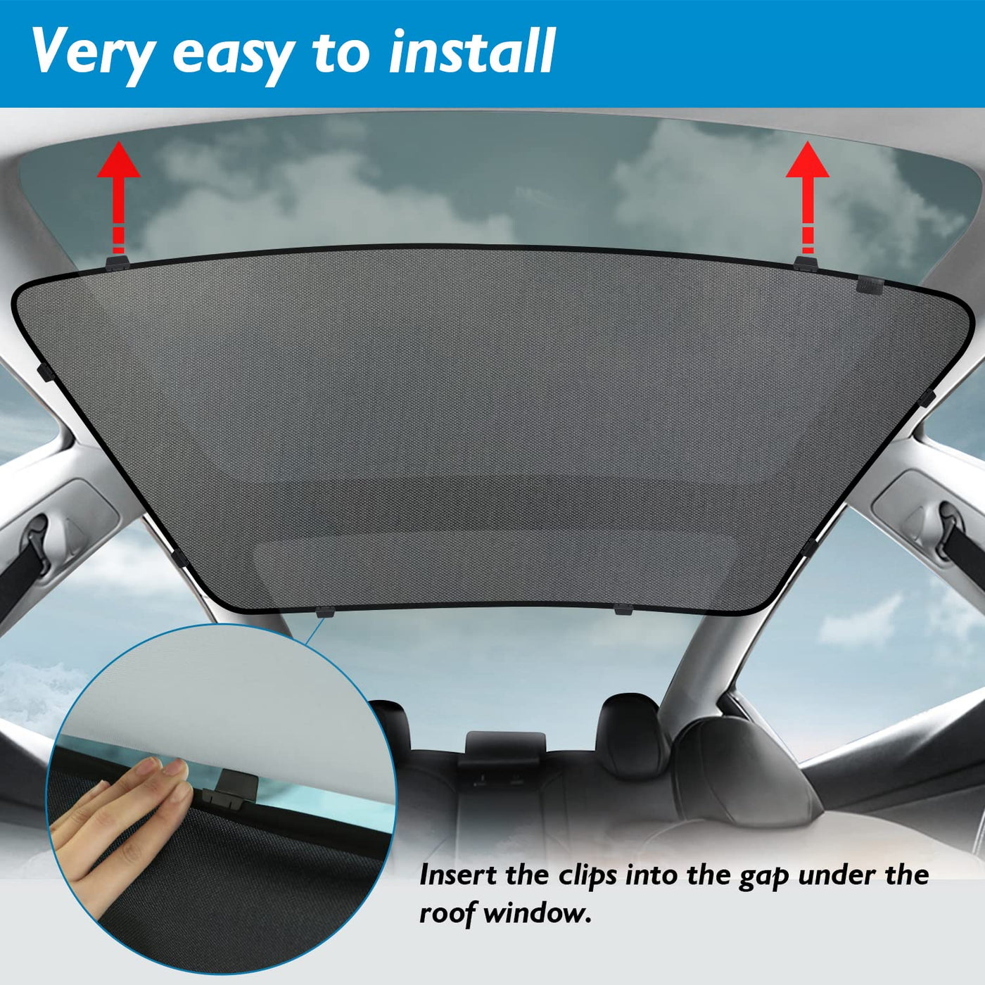 Q: How easy is it to install the sunshade in my Tesla Model 3?A: Installation is simple and quick. The sunshade comes with specially designed clips that you insert into the gaps under the sunroof, and you can adjust their position to secure the shade in place.