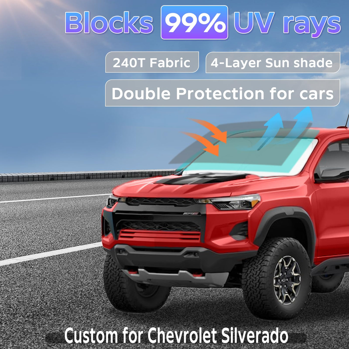 Sun Shade Sunshade For Chevrolet Silverado 1500 2014-2019 Windshield Cover, 2-Layers Sun Shield 240T Sun Visor For Chevy Silvera