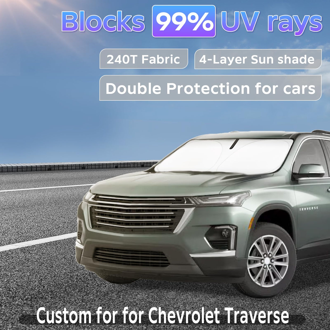 Sun Shade Sunshade For Chevrolet Traverse 2018-2024 2025 Windshield Cover, 2-Layers Sun Shield 240T Silver Sun Visor For Chevry