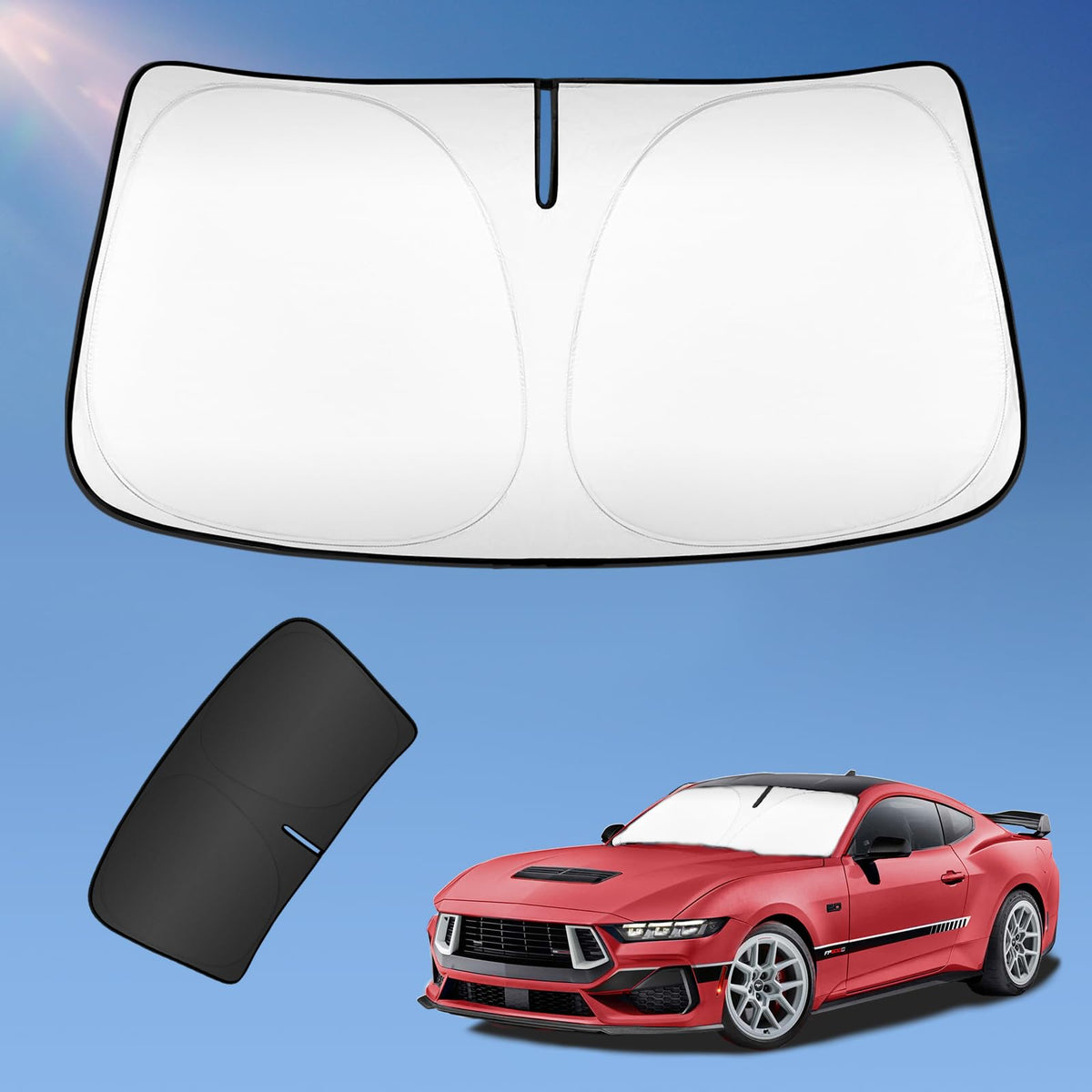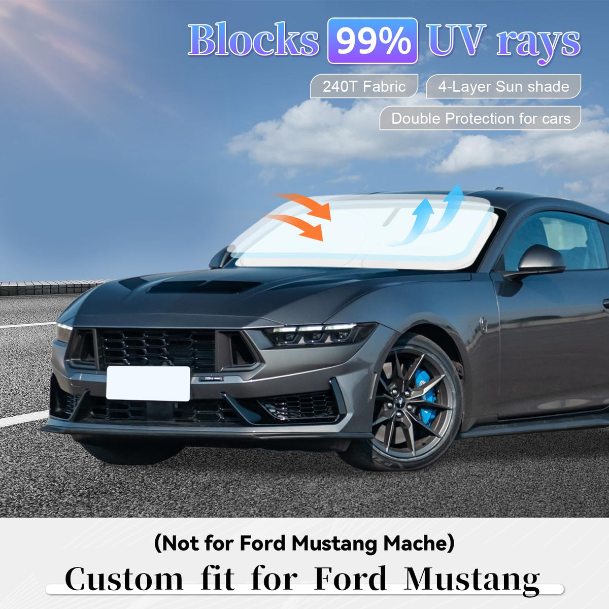 Sun Shade Sunshade For Ford Mustang 2015-2025 Windshield Cover, 2-Layers Sun Shield 240T Silver Coating Sun Visor Foldable Windo