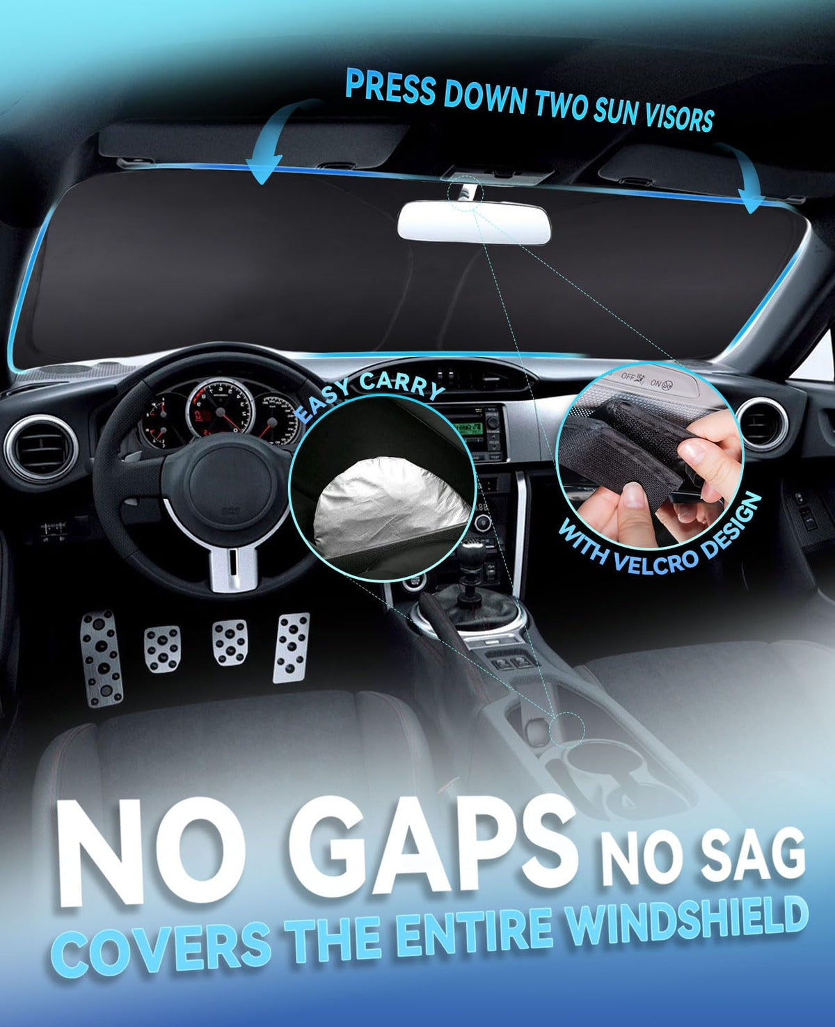 Windshield Sun Shade 4-Layer Foldable Front Window Sunshade Reflector Cover, Sun Visor Protector Blocks UV Rays. Car Windshield Sun Shade | Reflector Sunshade Offers Ultimate Protection for Car Interior | Cool Reflective Sun Blocker Car Windshield Sun Shade with Storage Pouch. Reflective 240T Material Sun Visor with Mirror Cut-Out Upgrades Design Sunshade- It really does a great job of holding the heat, Good for someone live in Fl. Great for any avid traveler living in sunny Texas, to try Car Sun Shade for your car because it gets soooooo hot there. Using it for several road trips across the state, Say goodbye for the hot car seat. Keep your Hyundai Elantra cooler and prevents leather seats from cracking and fading - Reflective material effectively blocks heat and UV rays - Significantly reduces interior temperature on hot days - Easy to install by just unfolding over the glass - Conveniently folds up into a compact size for storage - Well-constructed with durable quality materials - Protects dashboard and interior from sun damage Recommended this windshield sun shade! It's easy to put up and folding it is easy. The directions tell you to fold it in half so the circles are together, then twist both hands in opposite directions. Bring them together and make everything line up as much as you can, then use the elastic band to secure it. When you do it all the time so you will get it fast at it. Practice makes perfect, Find the trick. You'll fold super fast. As for size, it fits perfectly. It fits just right and really helps keep the heat down besides protect