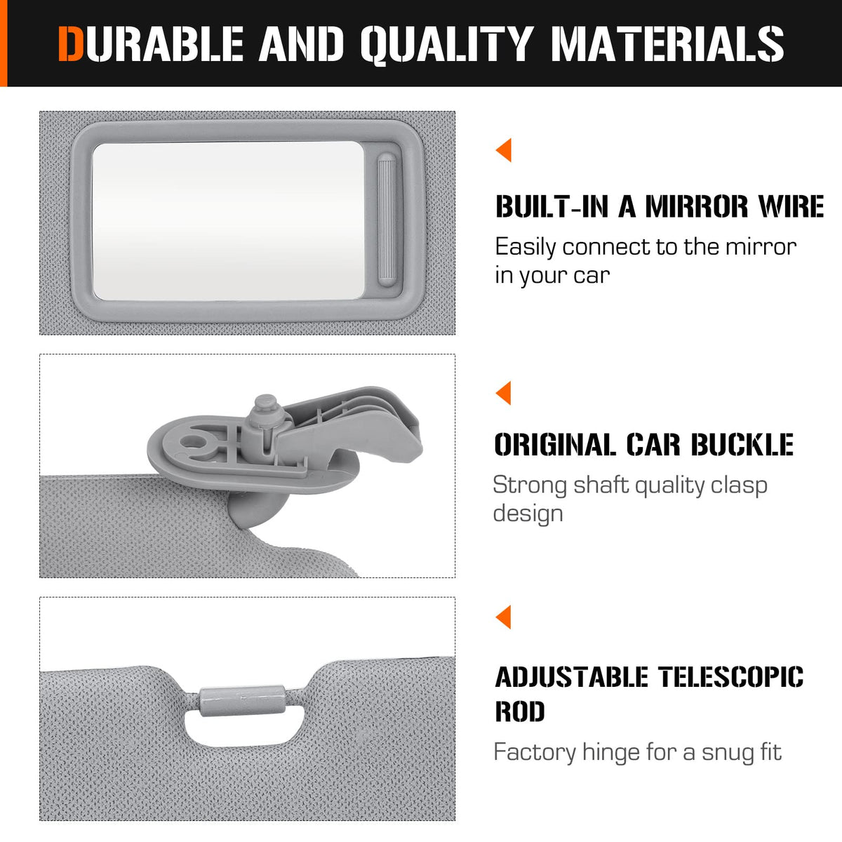 Note: Left driver side sun visor Gray, without light Left Driver Side Sun Visor Compatible with: for 2011 - 2015 Hyundai Elantra Measure: 17.56 x 7.8 x 2.05 inches, weighs 1.5 BL Replace for part number: 852103X000TX Package: 1 X Left driver side sun visor