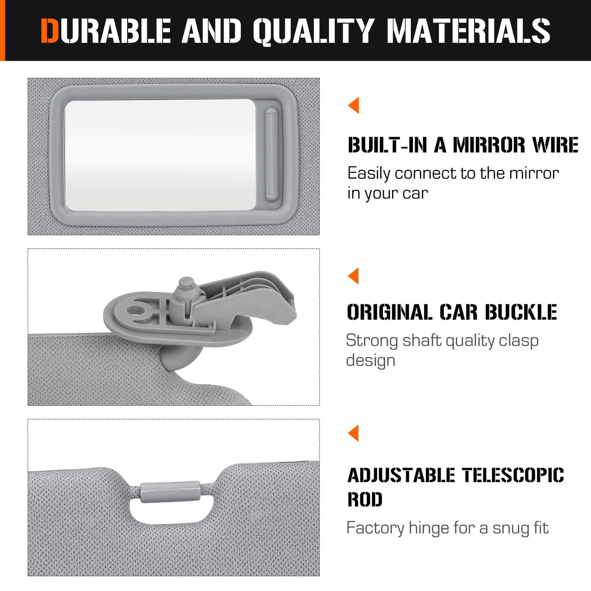 Note: Right passenger side sun visor Gray, without light Right Passenger Side Sun Visor Compatible with: for 2011 - 2015 Hyundai Elantra Measure: 17.56 x 7.8 x 2.05 inches, weighs 1.5 BL Replace for part number: 852203X000TX Package: 1 X Right passenger side sun visor