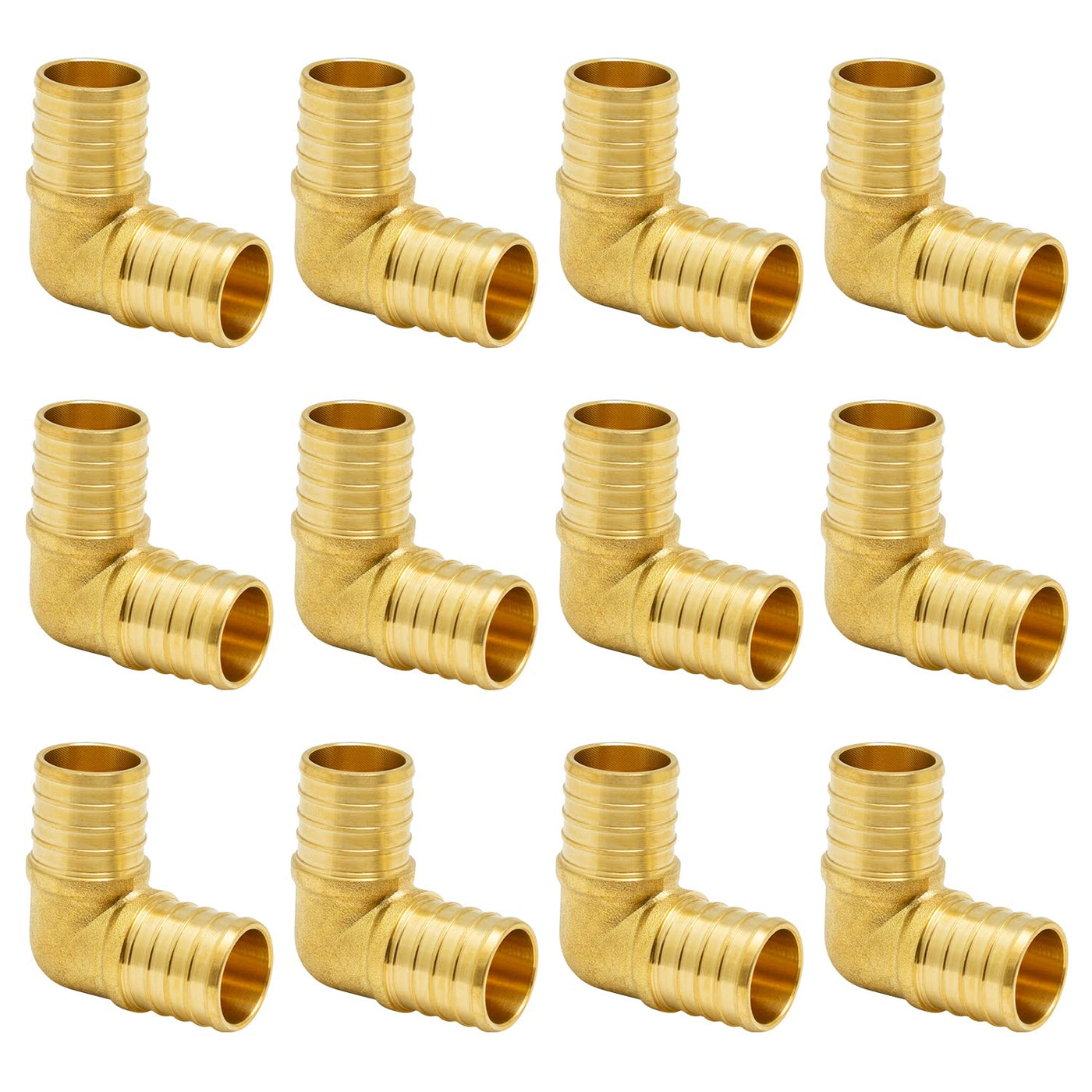 Sungator 12-Pack 1 Inch 90 Degree Elbow Pex Fittings, No Lead Brass Crimp For Pex Tubing