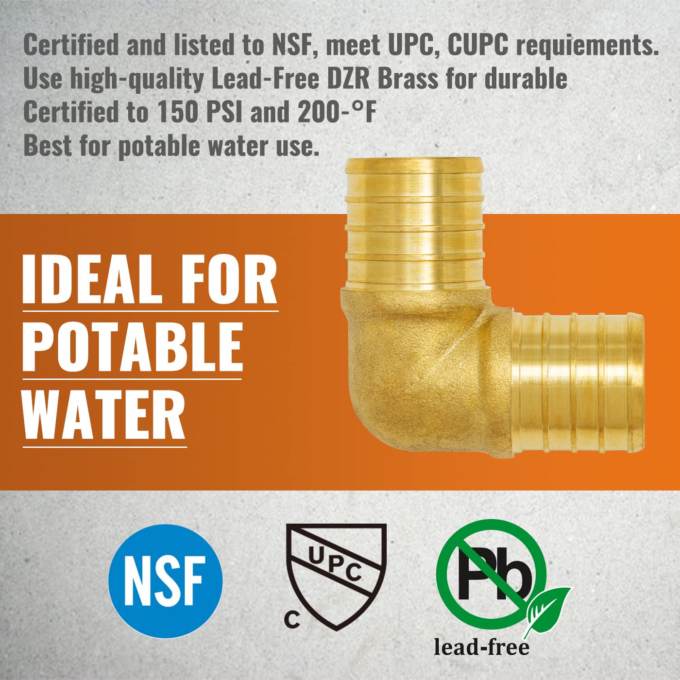 Q: What are the benefits of using SUNGATOR 1 Inch 90 Degree Elbow PEX Fittings?A: The SUNGATOR 1 Inch 90 Degree Elbow PEX Fittings are made from premium lead-free brass, ensuring they are safe for drinking water use. They resist corrosion, rust, and can withstand temperatures from 32℉ to 200℉, making them ideal for various plumbing projects.