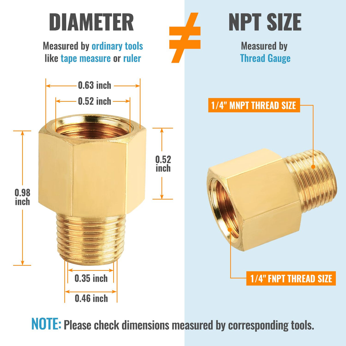 Sungator Brass Pipe Fittings, 1/4" To 1/4" Adapter Npt Fittings, 1/4" Npt Male Pipe X 1/4" Npt Female Pipe (2 Pack)