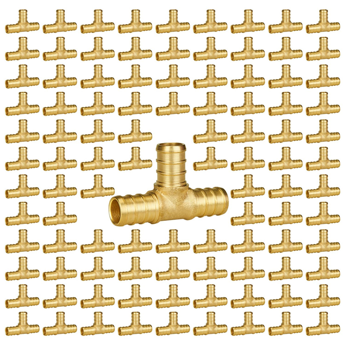 Sungator Pex Fittings 1/2 Inch, 100-Pack 1/2" Pex Tee, 1/2 Inch Pex T Fittings, No Lead Brass, 1/2 Inch Pex Fittings For Pex Pipe