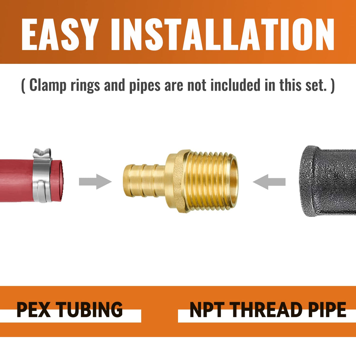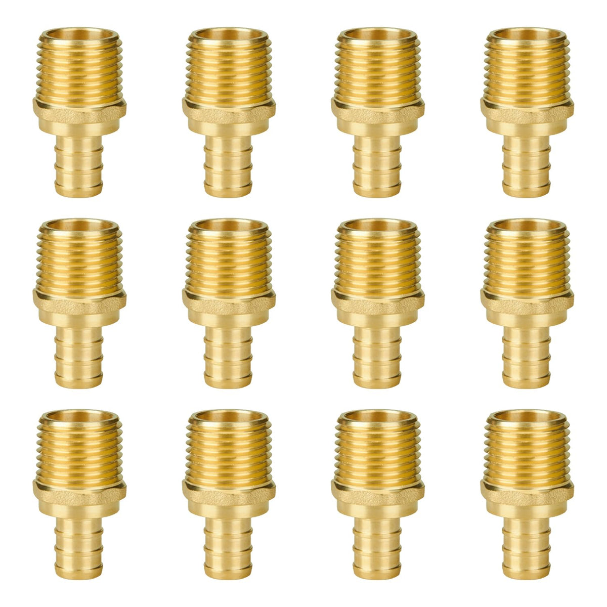 Sungator Pex Fittings 1/2 Inch, 12-Pack 1/2" Pex Male Adapter, 1/2" Npt To 1/2" Pex, No Lead Brass, 1/2 Inch Pex Fittings For Pex Pipe
