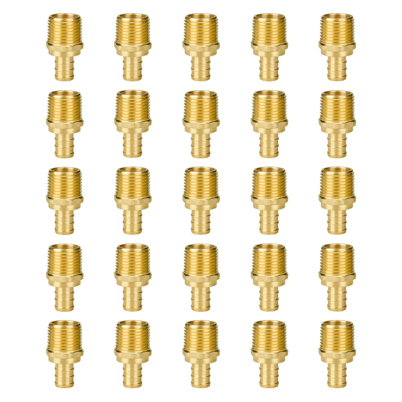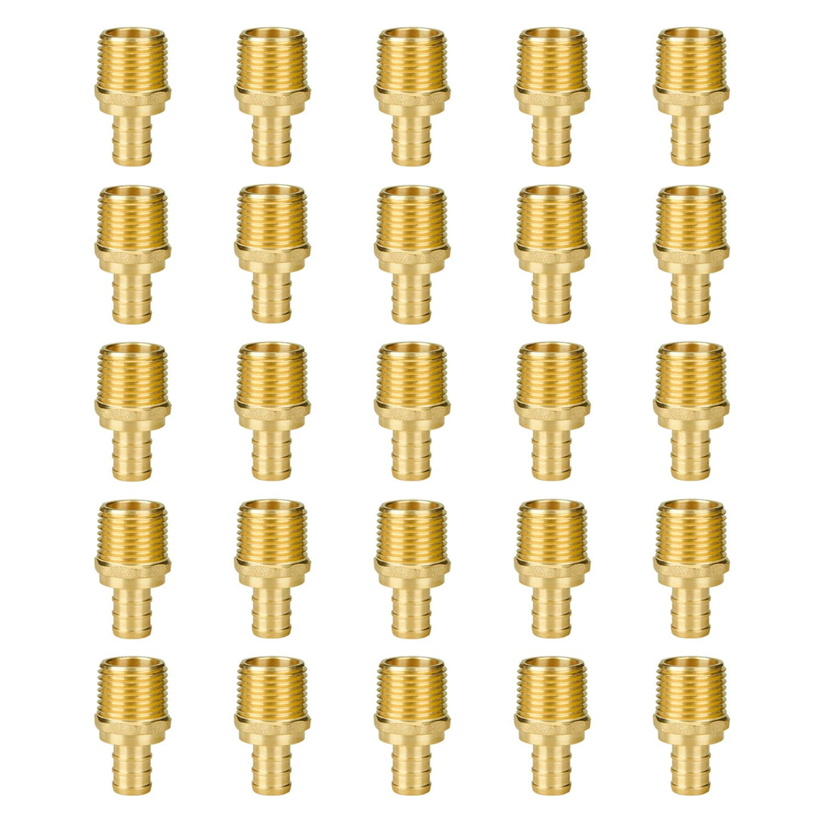 Sungator Pex Fittings 1/2 Inch, 25-Pack 1/2" Pex Male Adapter, 1/2" Npt To 1/2" Pex, No Lead Brass, 1/2 Inch Pex Fittings For Pex Pipe, Nsf, Upc Certified