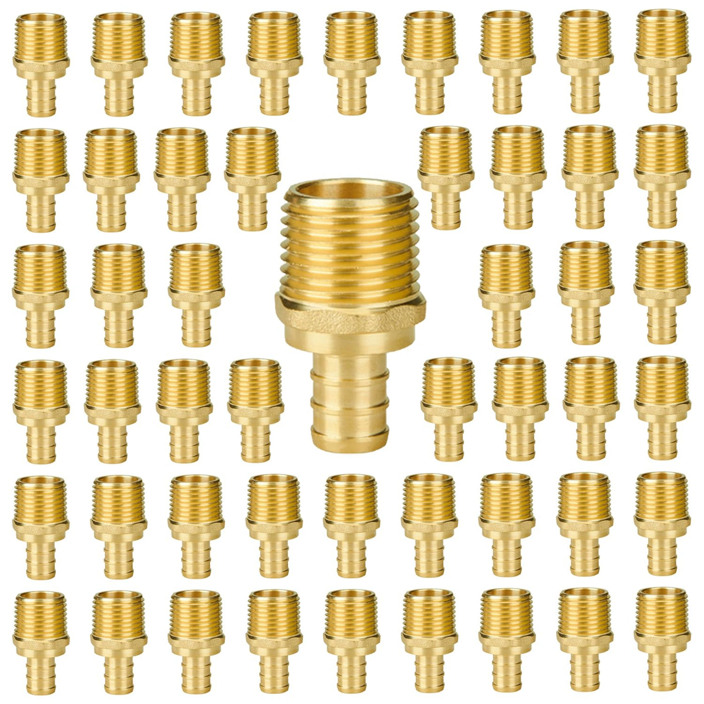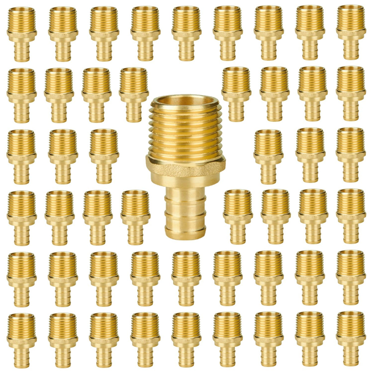 Sungator Pex Fittings 1/2 Inch, 50-Pack 1/2" Pex Male Adapter, 1/2" Npt To 1/2" Pex, No Lead Brass, 1/2 Inch Pex Fittings For Pex Pipe