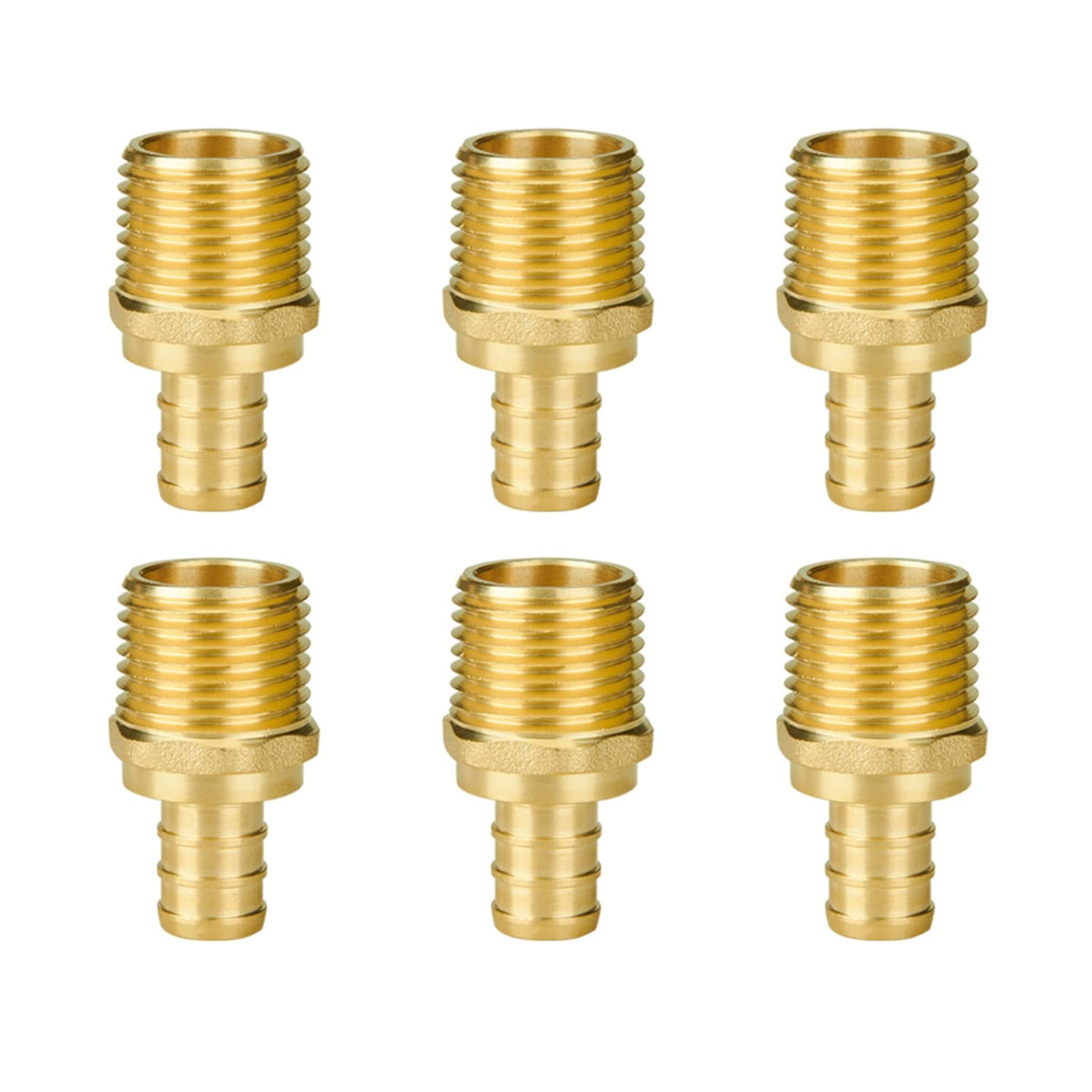 Sungator Pex Fittings 1/2 Inch, 6-Pack 1/2" Npt To 1/2" Pex Male Adapter, No Lead Brass, Nsf, Upc Certified