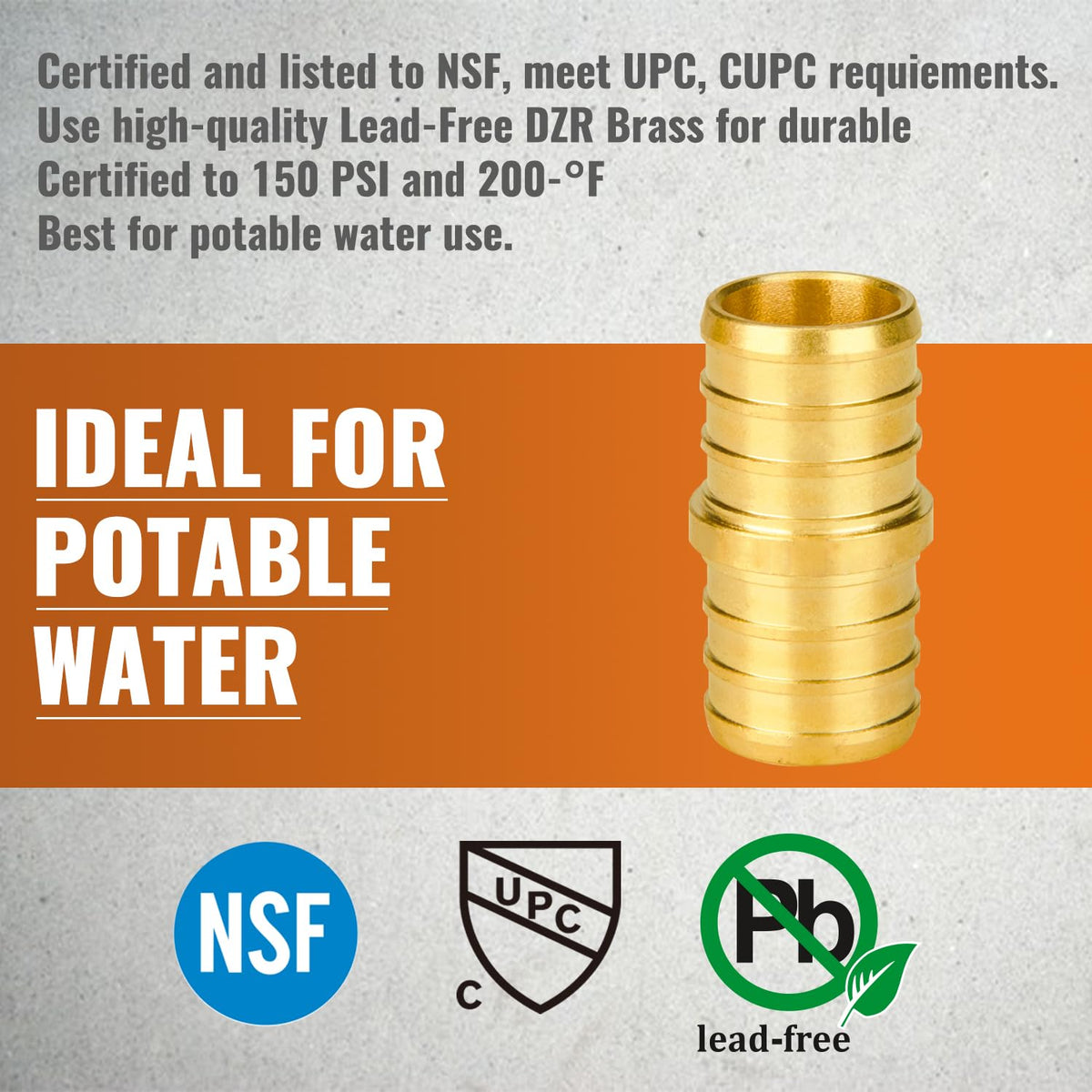 Sungator Pex Fittings 3/4 Inch, 50-Pack 3/4" Pex Coupling, No Lead Brass, 3/4 Inch Pex Fittings For Pex Pipe