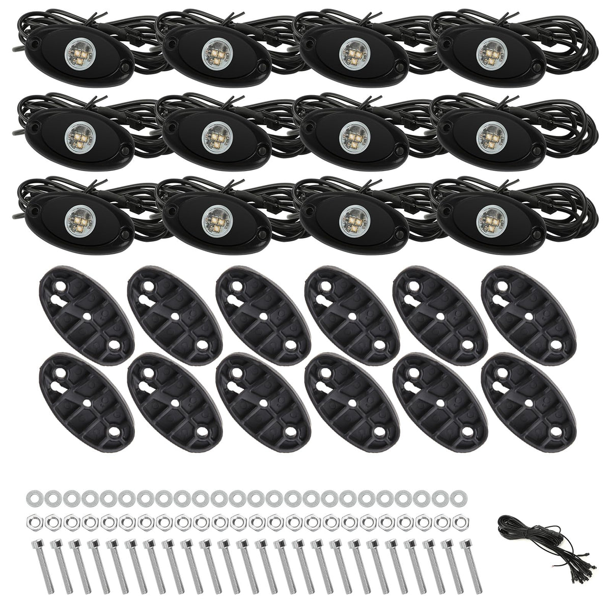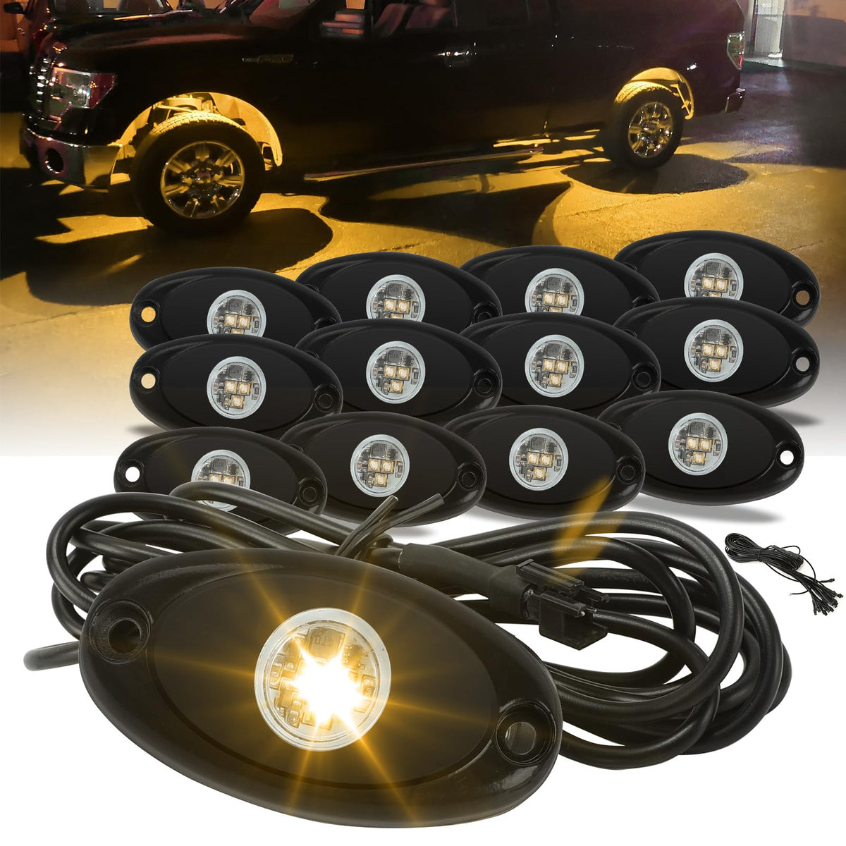 SUNPIE 12 Pods Amber LED Rock Lights Kits for Off Road Truck Car ATV SUV Motorcycle Under Body Glow Light Lamp Trail Fender Lighting, 52.5Ft Extension Wires Provided(Amber)
