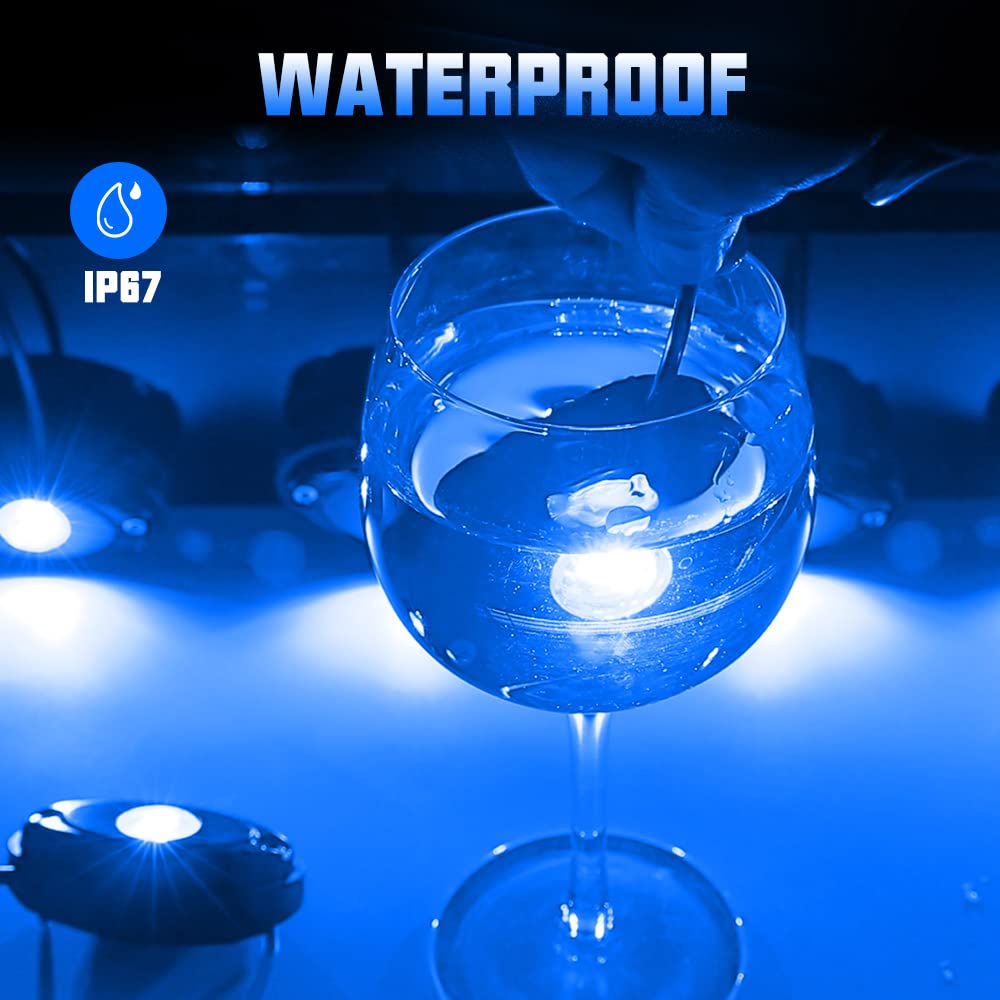 ?SUPER BRIGHT TRUE BLUE COLOR?Original high power chip, More Brighter, Longer life span! This low profile light kits will boost your night time driving efficiency as well as turn heads. Powerful high power chips up to 50,000 hours life-span.?52.5Ft (16 METERS)EXTRA EXTENSION WIRES PROVIDED. COMPATIBLE WITH ALL TRUCKS/SEDANS/GOLF CART/ATV/UTV/BOATS?52.5Ftextension wires provided in the package, helps you to extend rock lights installtion area. Working perfectly on cars, Working perfectly on sedans, trucks, suv, utv, atv, boats, motorcycles.?IP67 WATERPROOF, DUSTPROOF?We tested waterproof function and they could light up even covered with water. No worry moisture enter the interior of rock lights.?EASY TO INSTALL?You can choose to install rock lights on your fender board. We provide screws tools, rubber mounting pads, extension wires. Easy to install. easily drilled onto your truck fender board.?1 YEAR WARRANTY?Backed up 1 year warranty from brand ''SUNPIE'' We will help you and respond to you within 24 hours, any question, please contact SUNPIE customer service for help.