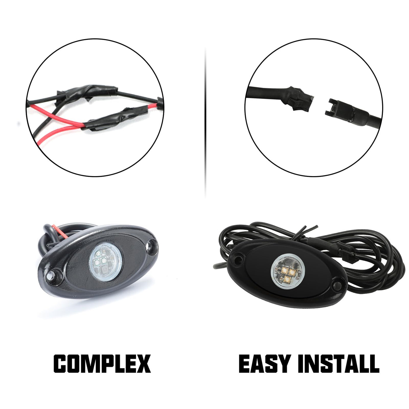?EASY TO INSTALL?You can choose to install rock lights on your fender board. We provide screws tools, rubber mounting pads. Easy to install. easily drilled onto your truck fender board.