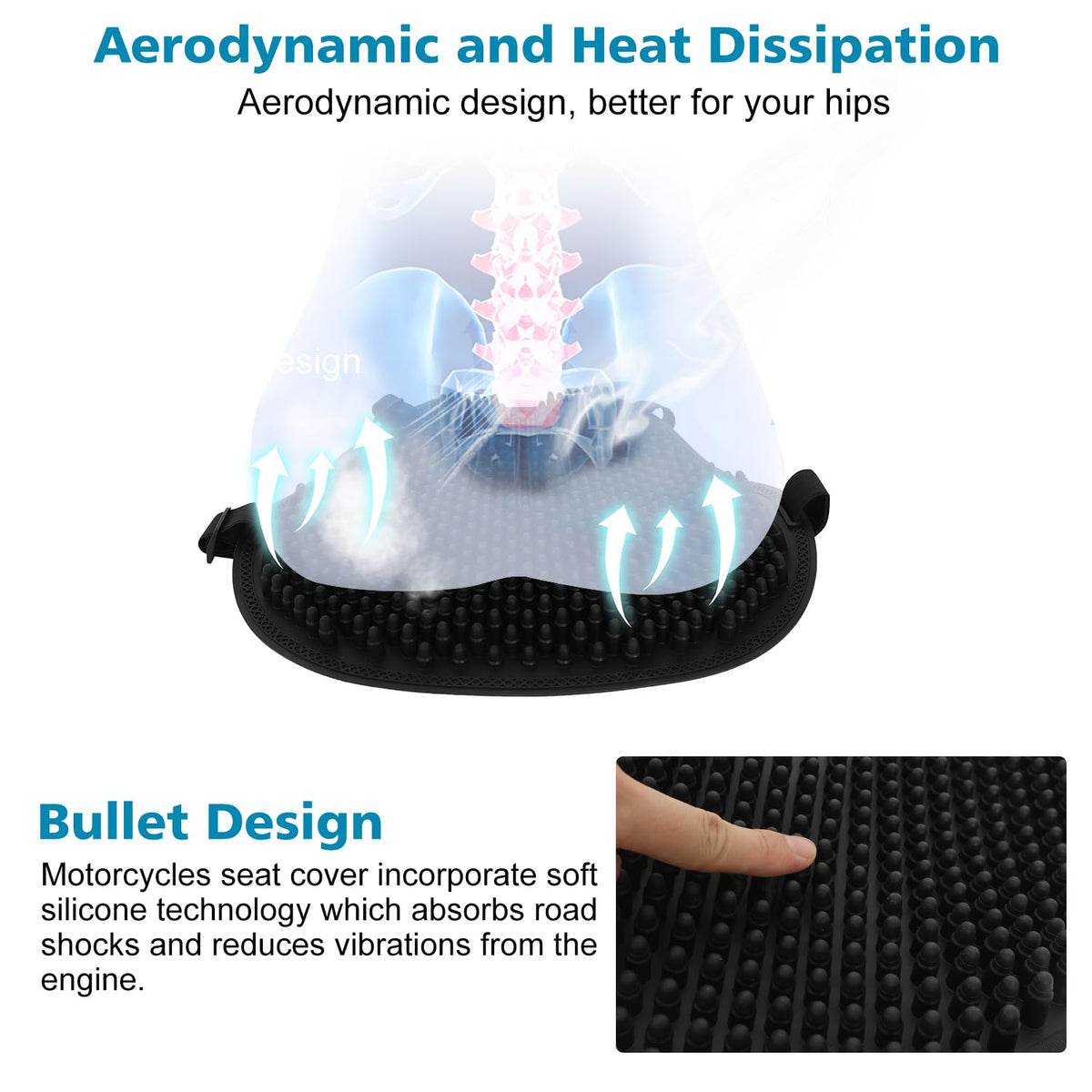 SUNPIE Motorcycle Seat Cushion Pad with Bullet Design, Universal Motorcycles Seat Cover Silicone Breathable Comfortable UV Resis