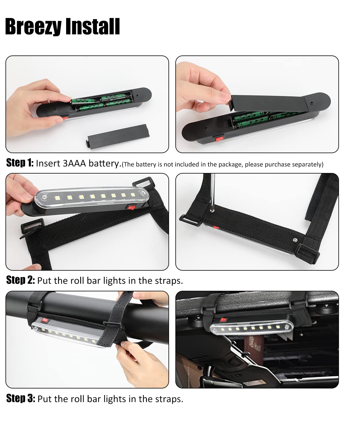 Application UTV interior lights are universal kit, which work for UTV including Polaris RZR 570 800 900 1000 XP Turbo, Polaris Ranger 500/570/1000/, Polaris General 1000. UTV dome light Compatible with CAN-AM Commander Defender Maverick X3 Roll bar led lights compatible with all Jeep wrangler Model CJ TJ TJ JK JL JT Pickup Truck. Specification Watt of dome light for utv: 30w Color of dome light for utv: White Quantity of dome light for utv: 2 PCS LED chip of dome light for utv: 16 pcs of 5050 smd Fitment of dome light for utv: Universal kit Placement on Vehicle of dome light for utv: Any place with round roll bar