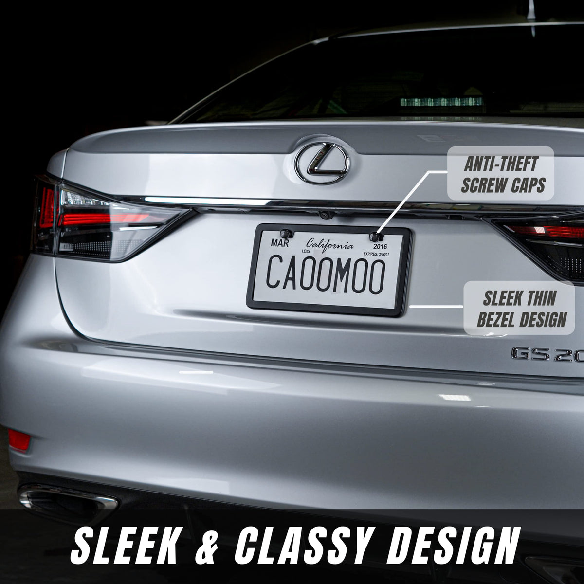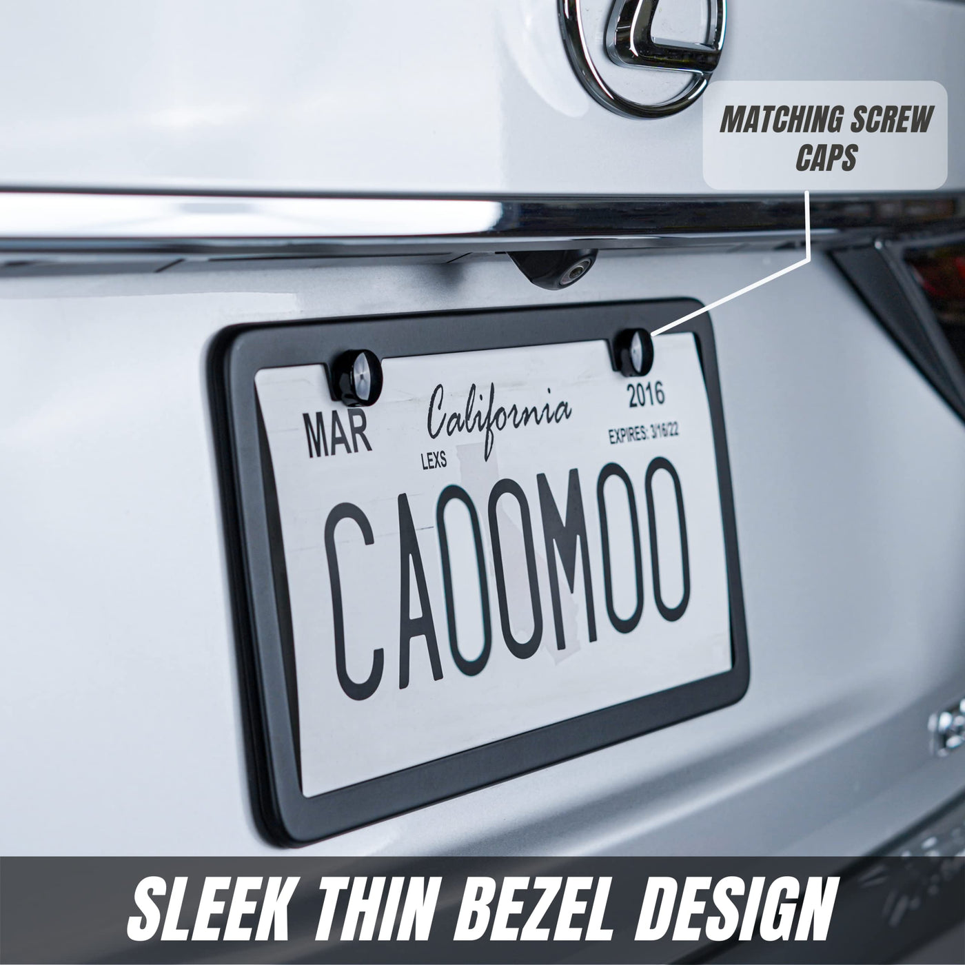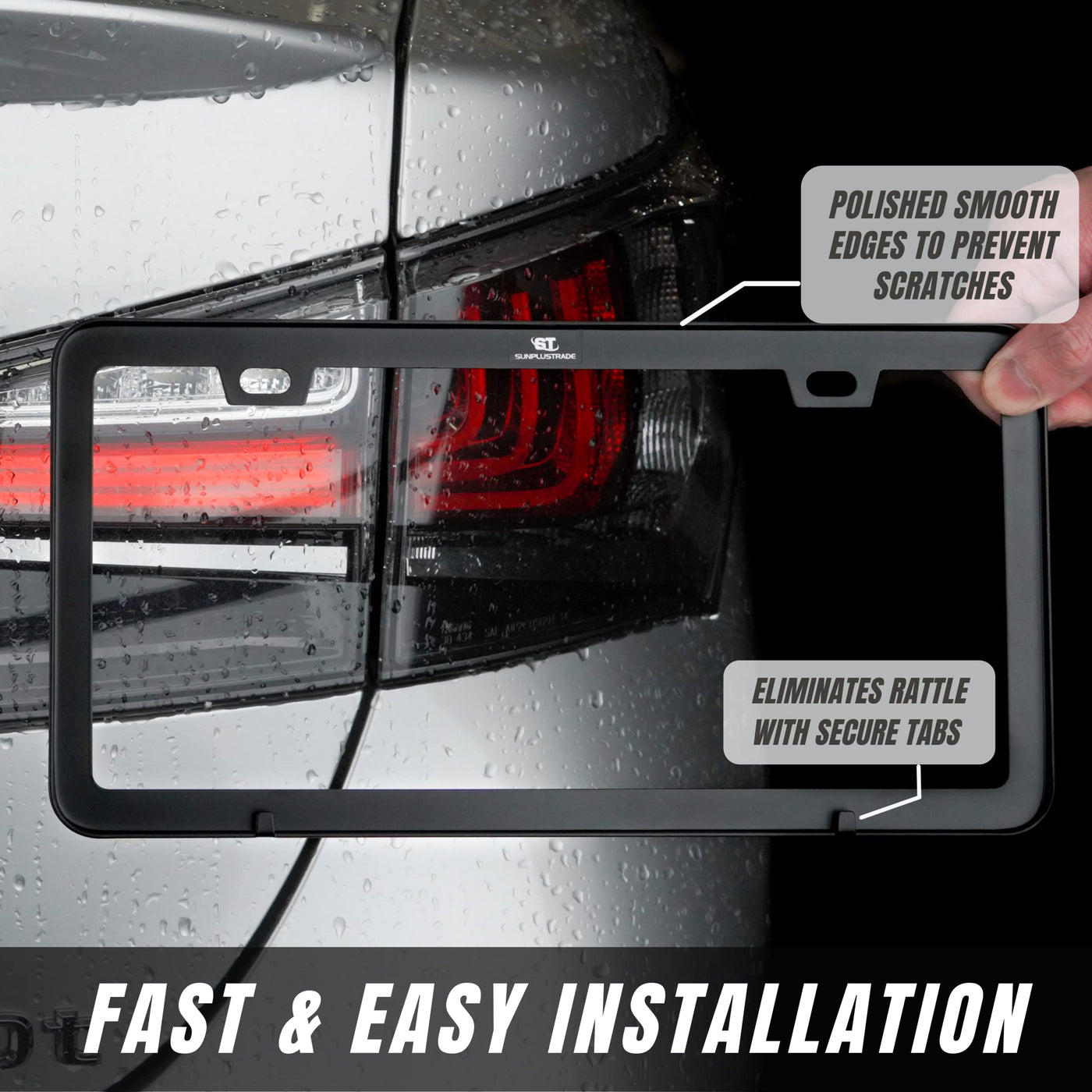 Sunplustrade License Plate Frame Black Matte Powder Coated Aluminum With Screw Caps (2 Pieces)