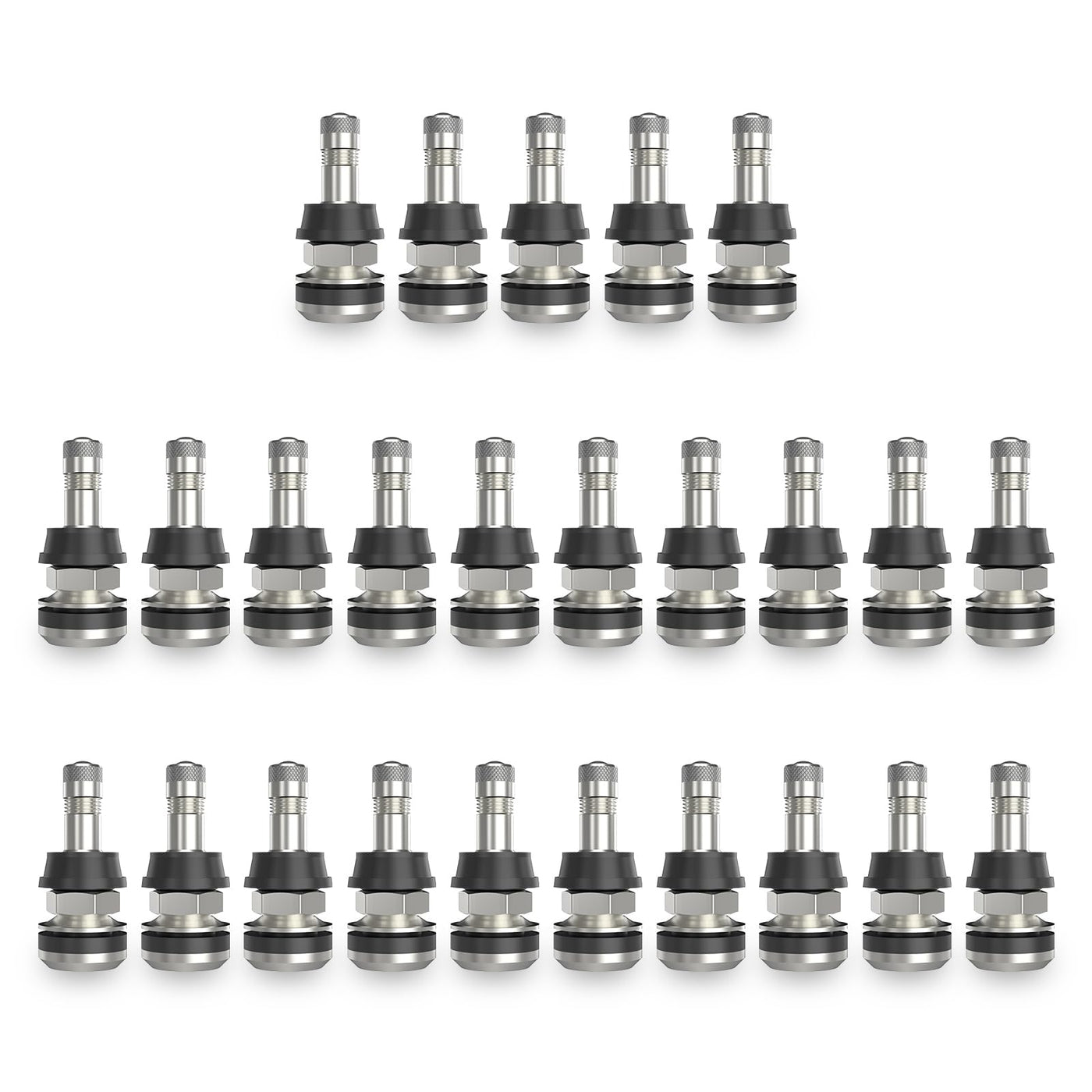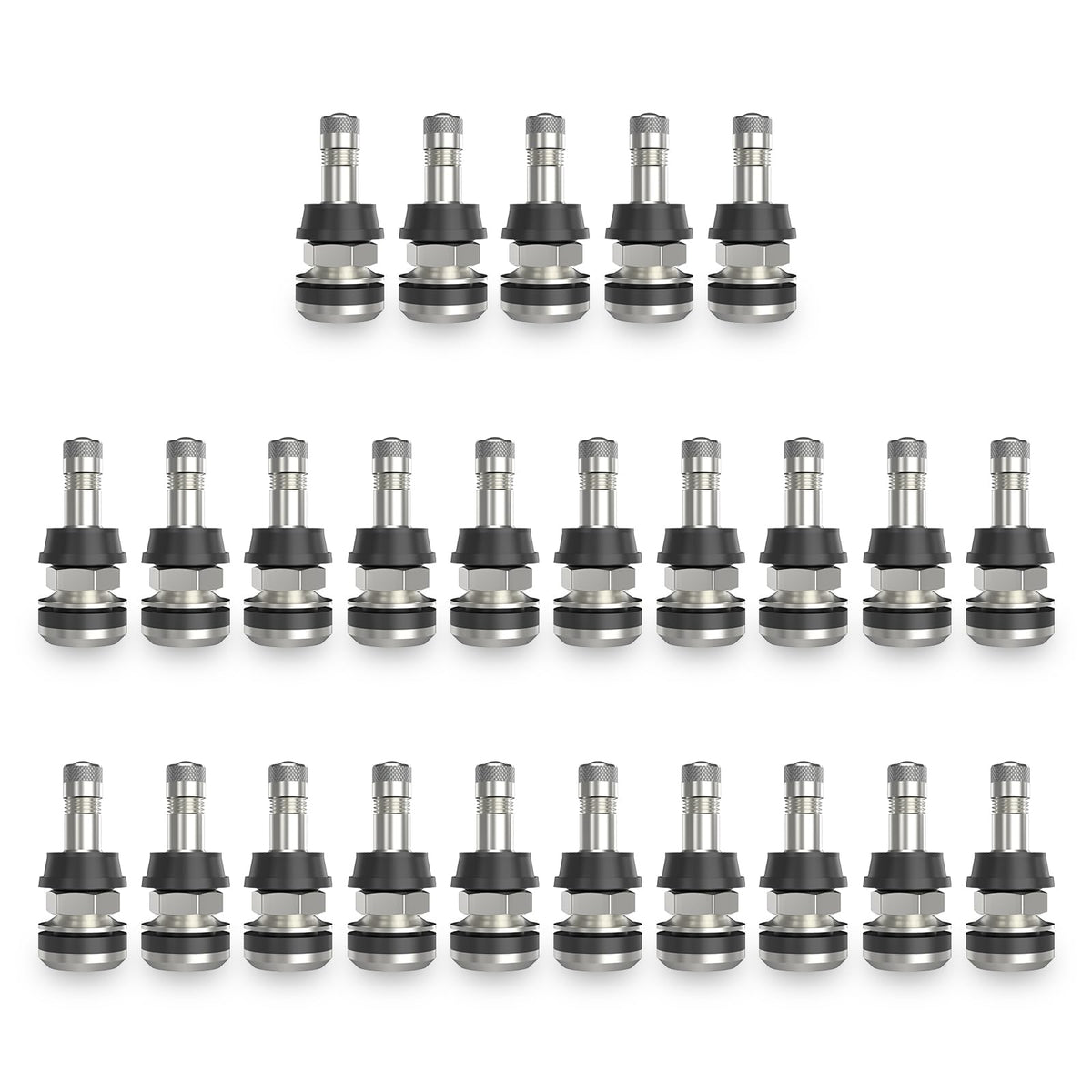 Sunsoul Tr416 25Pcs Metal Valve Stems Outer Mount Fits .453'' & .625'' Rim Holes, Silver, High-Pressure Clamp-In Tire Valves