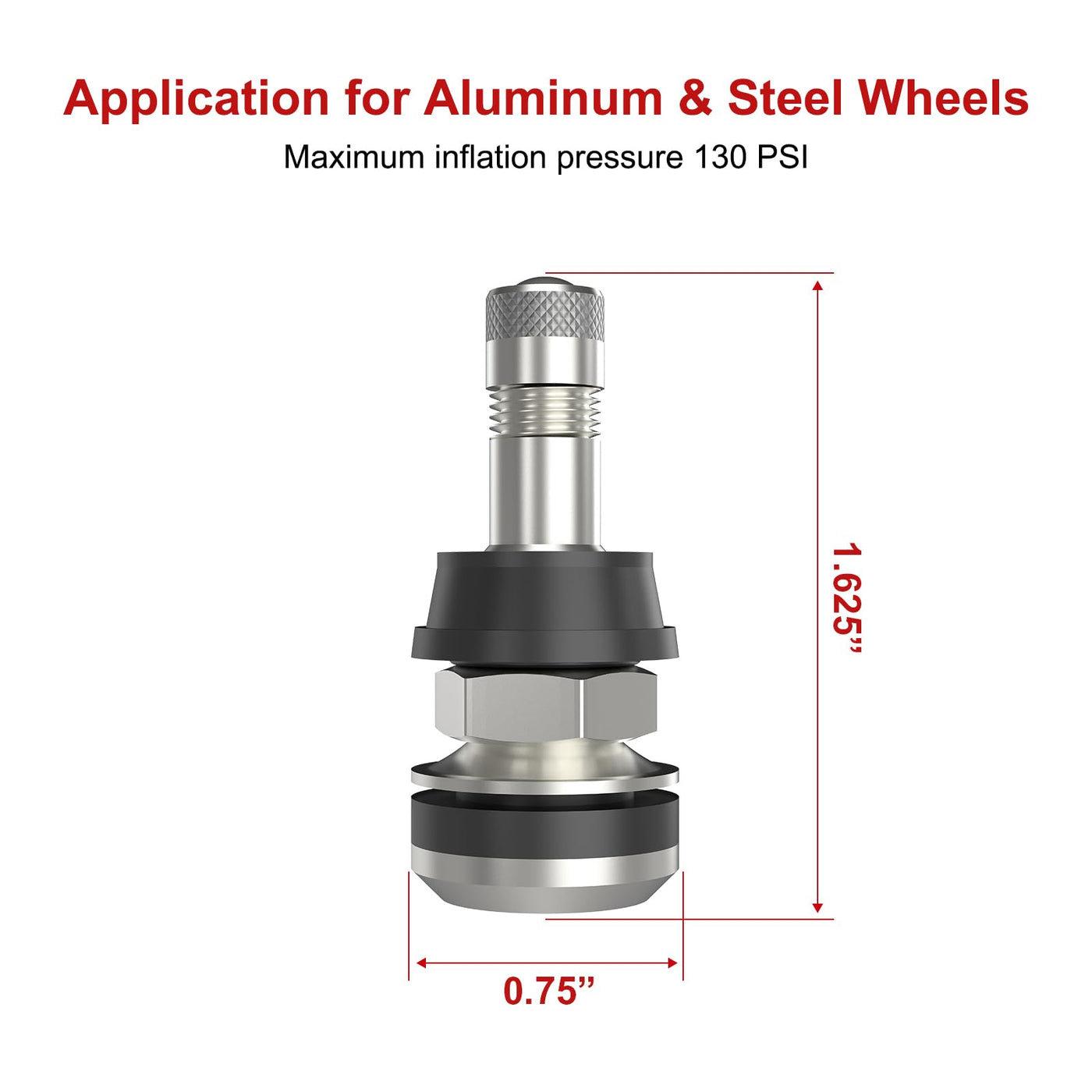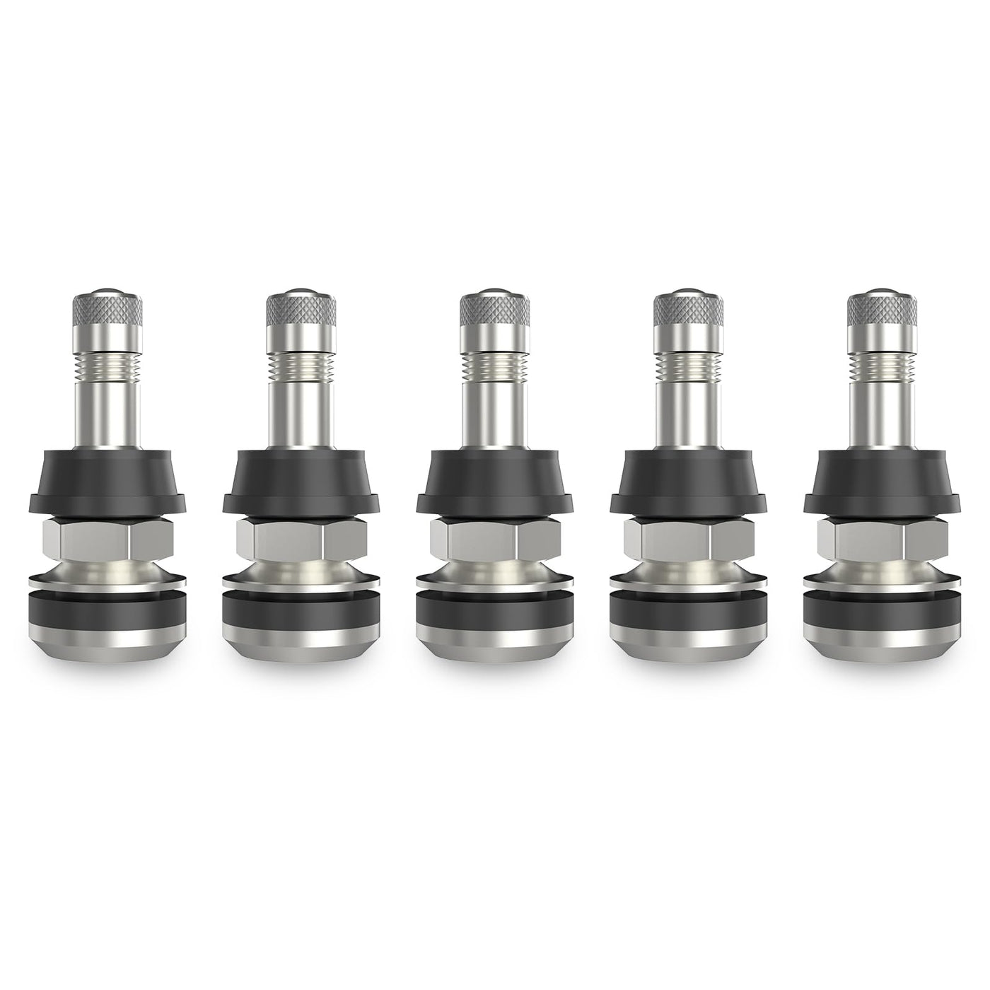 Sunsoul Tr416 5Pcs Metal Valve Stems Outer Mount Fits .453'' & .625'' Rim Holes, Silver, High-Pressure Clamp-In Tire Valves